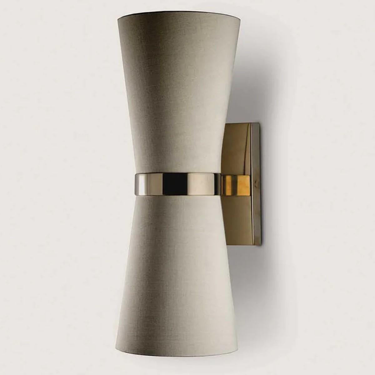 The Small Lilburn Wall Light is characterised by its striking shade shape, changing the shade and finish makes it very versatile. Polished Brass shown with 2 1/2" Empire in Putty Silk with Cream Card lining. Many Porta Romana pieces are fully customisable. Products can be scaled up or down, proportions can be changed, and designs can be painted to your choice. Please contact us for options and best pricing.