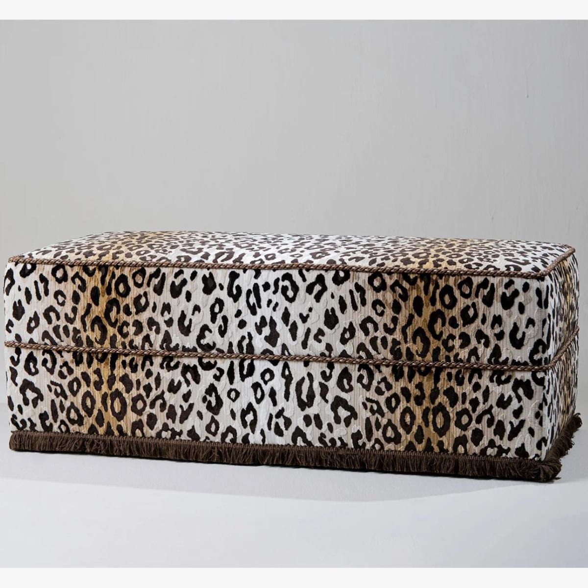 I love this footstool because of its bold leopard print, which makes it a stand-out piece that can add a touch of wild sophistication to various interiors. It works particularly well in eclectic, bohemian, or luxe maximalist schemes, where it can serve as an eye-catching anchor or even a side table with a tray on top. For practical styling, consider pairing it with neutral-toned furniture to let it pop, or use it as an extra seat in a living room or bedroom corner. Its versatile size makes it perfect for both functionality and decorative impact, especially in spaces where a little statement piece can elevate the overall look.
