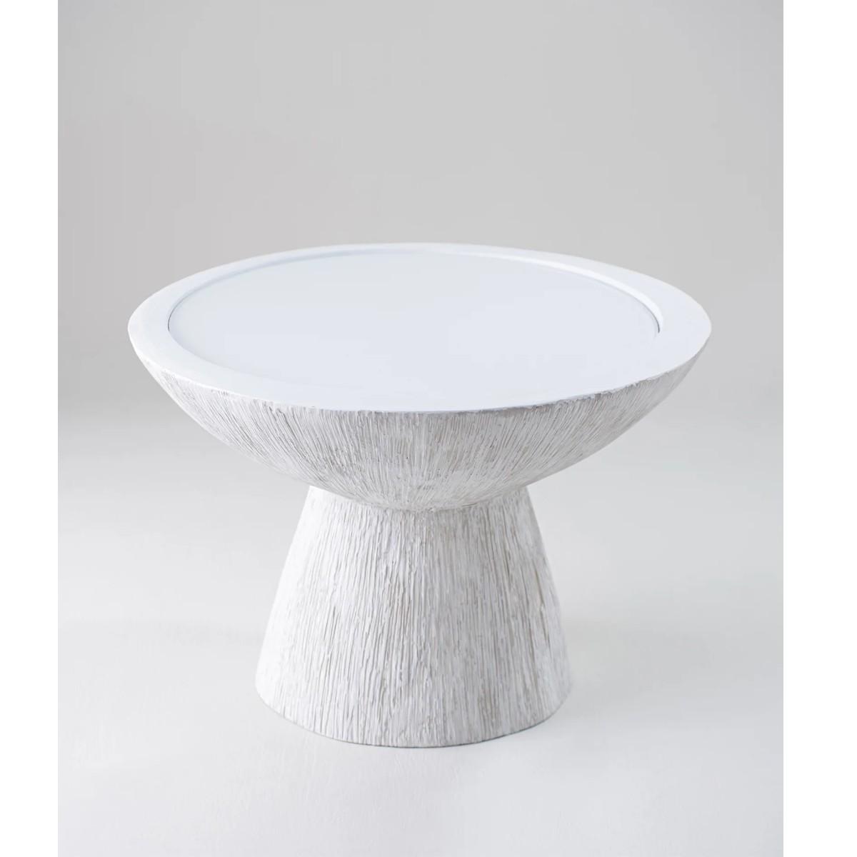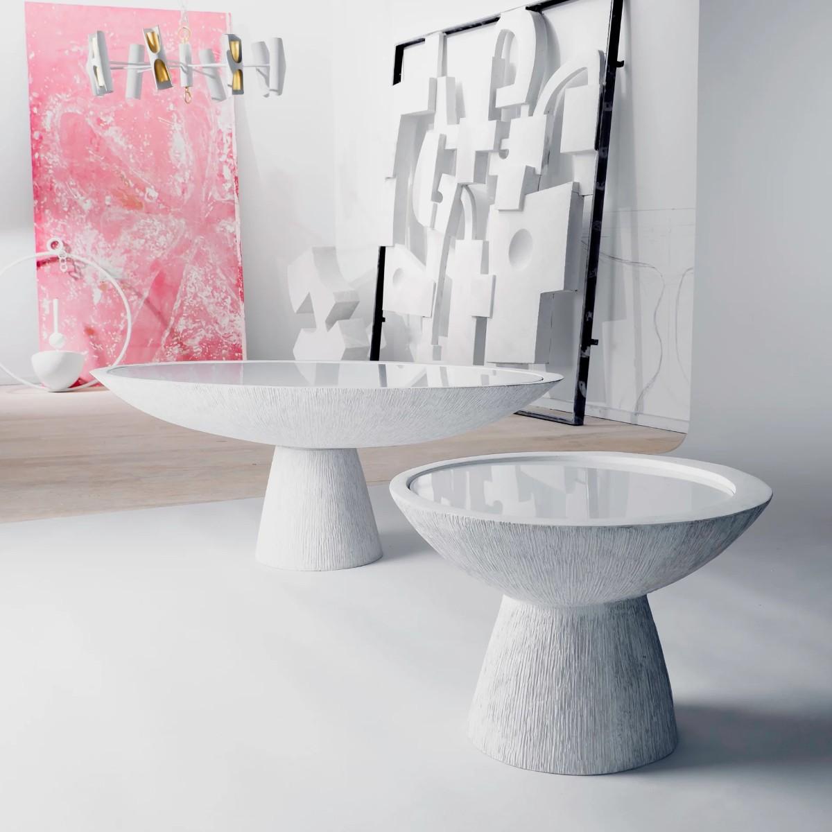 The Marina Side Table was designed by Gareth Devonald Smith. Marina, of the sea, from a submerged ancient temple, and cut from rock, light in appearance but bold and strong in form. Many Porta Romana pieces are fully customisable. Products can be scaled up or down, proportions can be changed, and designs can be painted to your choice. Please contact us for options and best pricing.