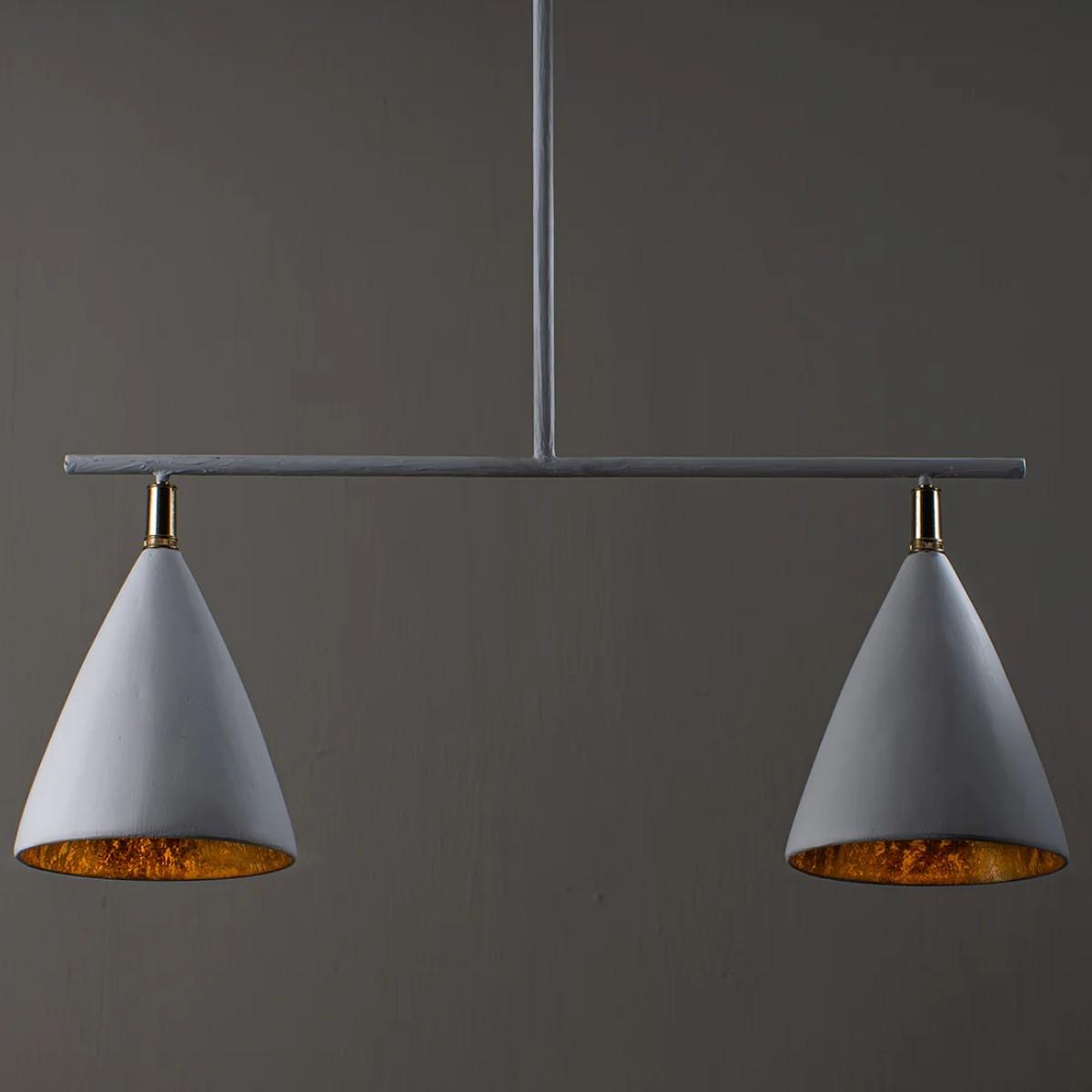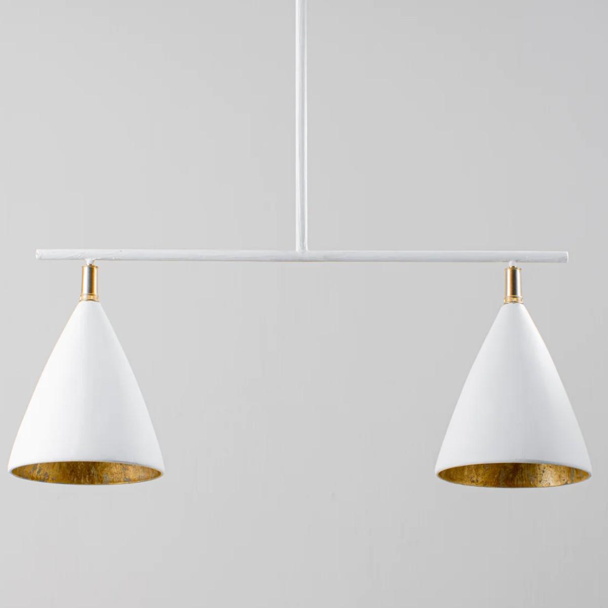 This pendant is a stylish choice for a modern or contemporary space, offering a sleek and minimal silhouette that will complement various interiors. I love how it combines crisp white plaster with subtle cream-etched gold detailing, adding a touch of understated luxury without overpowering the room. It's particularly versatile - works well above dining areas, kitchen islands, or even in a minimalist living room. For practical styling tips, consider pairing it with other gold accents or warm-toned decor to enhance its sophisticated appeal. To keep the look cohesive, opt for simple, clean-lined furniture, allowing the light to stand out as a focal point while providing functional illumination.