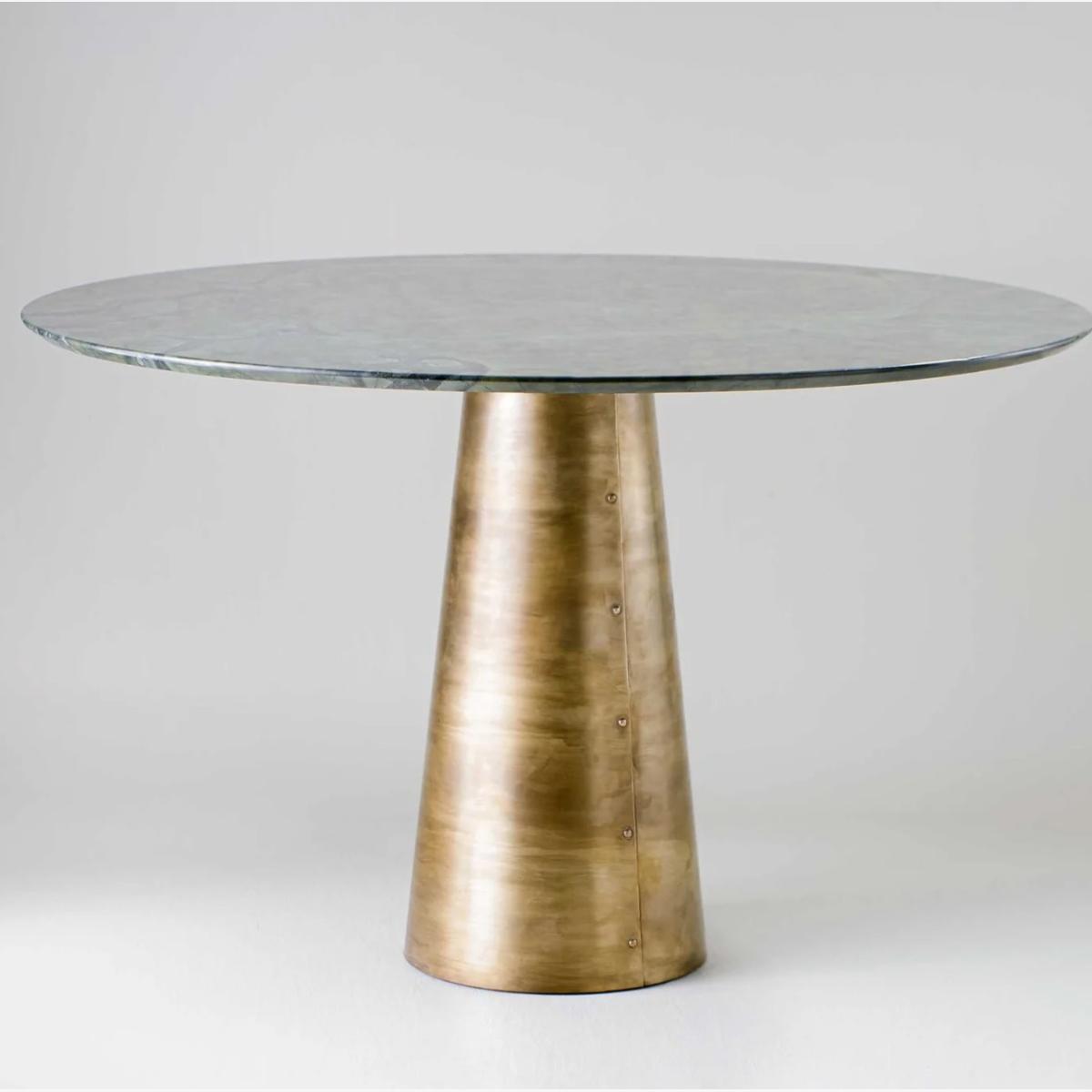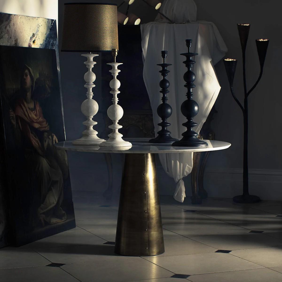 Made from a single sheet of brass wrapped around a block of wood, the Melville base is shaped before being hand riveted and hand patinated. Melville is a customisable piece with options to size the table top up or down. Many Porta Romana pieces are fully customisable. Products can be scaled up or down, proportions can be changed, and designs can be painted to your choice. Please contact us for options and best pricing.