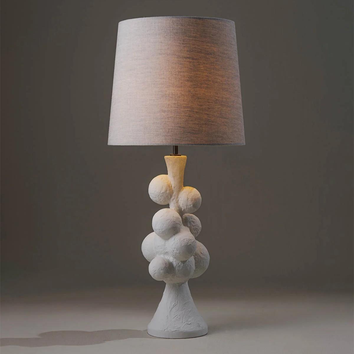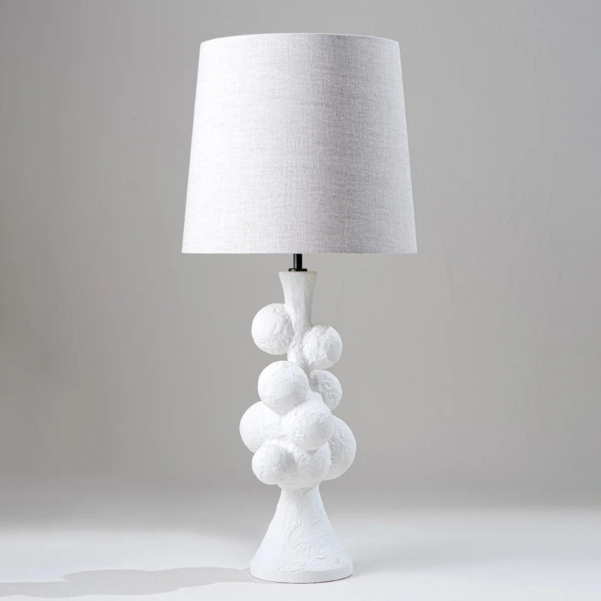 The Moons lamp is inspired by Picasso, combining a Cubist approach with an over-scaled design to resemble a piece of modernist sculpture. Now available on a smaller scale in Obsidian or Plaster White. Also available in any painted finish of your choice. Plaster White shown with 13" Bongo in Natural Linen and Cream Card lining. Many Porta Romana pieces are fully customisable. Products can be scaled up or down, proportions can be changed, and designs can be painted to your choice. Please contact us for options and best pricing. For ALL Porta Romana orders going to the USA, a 20% wiring surcharge is applied to each item.