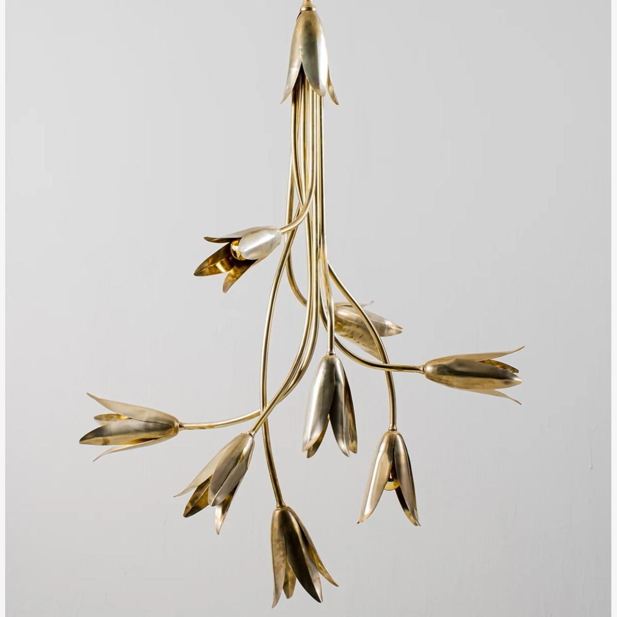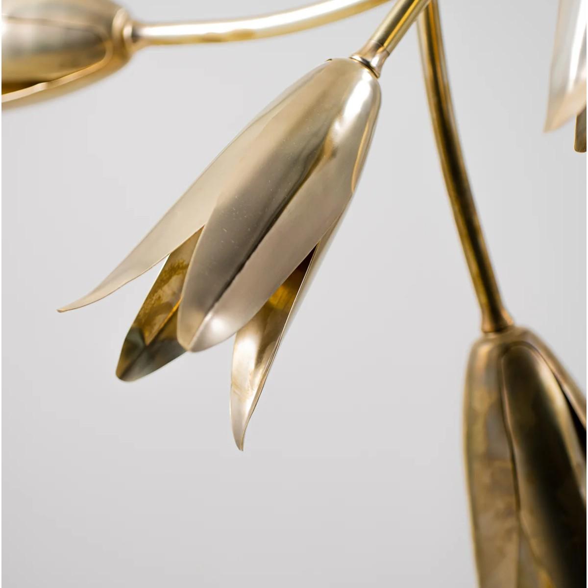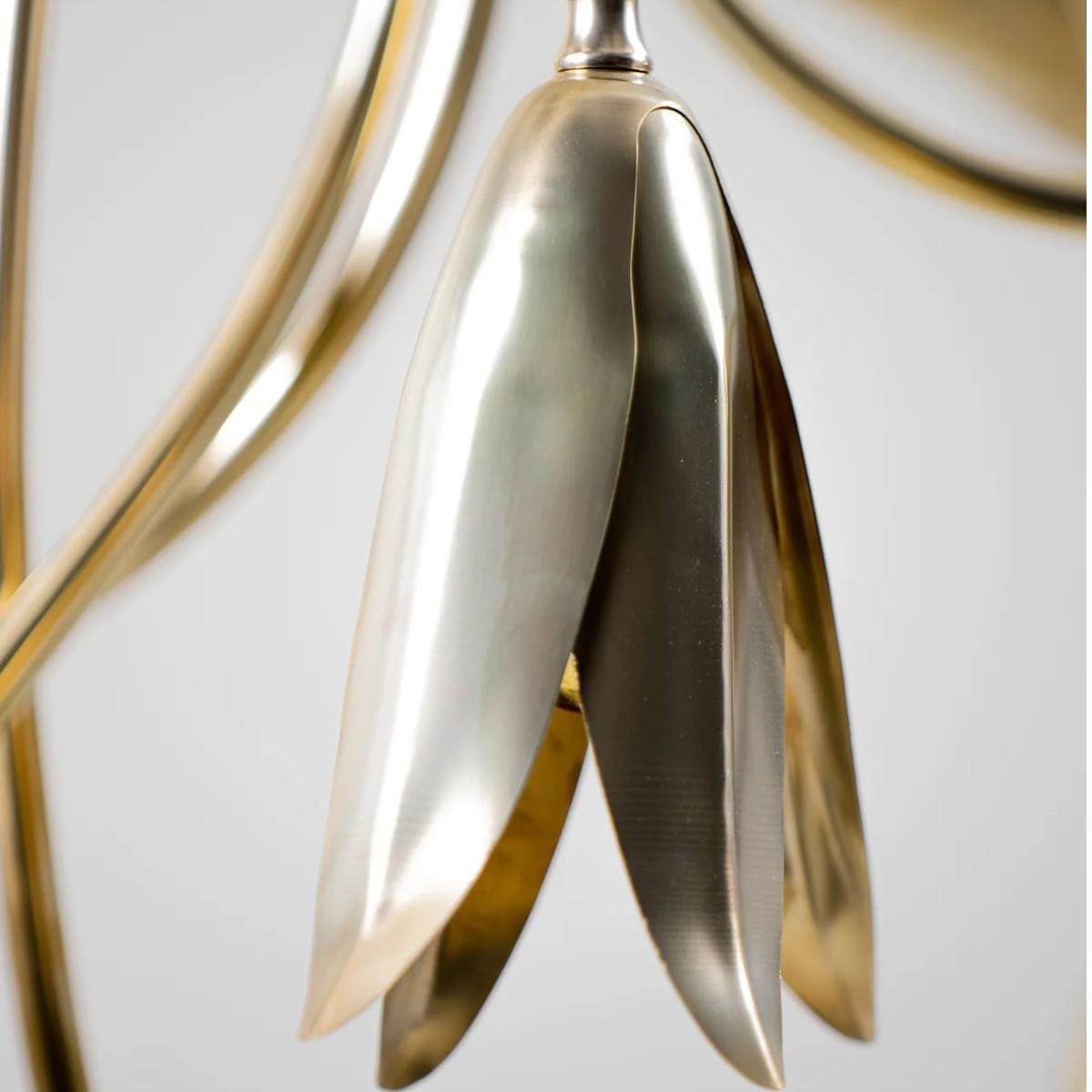 I love this chandelier because of its elegant, botanical-inspired design, which adds a sophisticated and sculptural focal point to any room. It works particularly well in interiors with a blend of modern and luxe elements, such as contemporary living spaces or eclectic dining rooms. To style it effectively, consider pairing it with minimalist furniture to let the fixture shine or in a scheme that incorporates warm metallic accents to enhance its gold finish. Practical tips include ensuring it hangs at a height that doesn’t obstruct sightlines or interfere with everyday use, and balancing its statement presence with simpler decor around it to avoid visual clutter. Overall, this piece adds a touch of organic luxury and becomes a conversation starter in any setting.