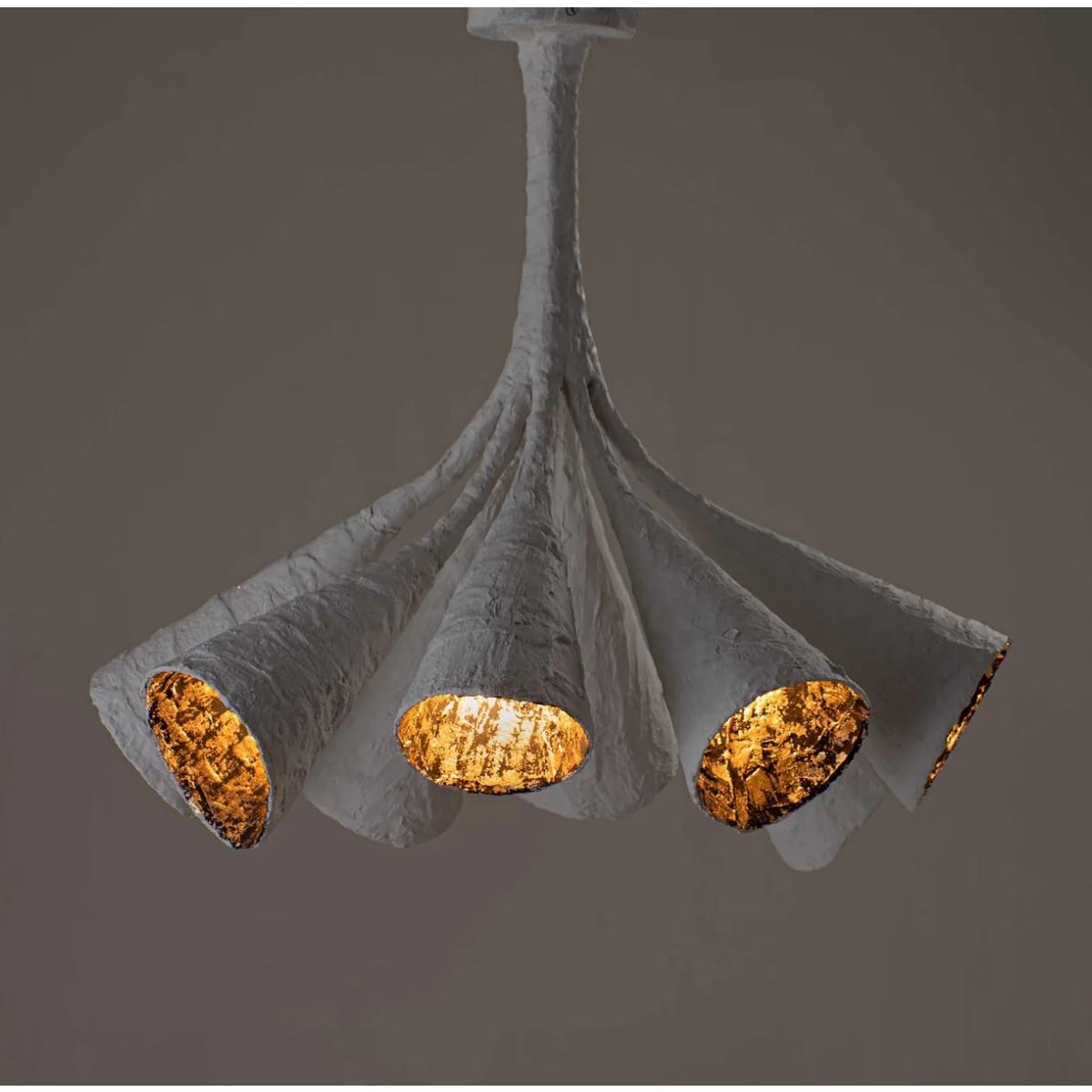 Each Ophelia ceiling light is individually hand sculpted by our artists in the paint workshop. Featuring beautifully twisting flutes that emit a golden light which is softened by its sculptural surface. Many Porta Romana pieces are fully customisable. Products can be scaled up or down, proportions can be changed, and designs can be painted to your choice. Please contact us for options and best pricing.