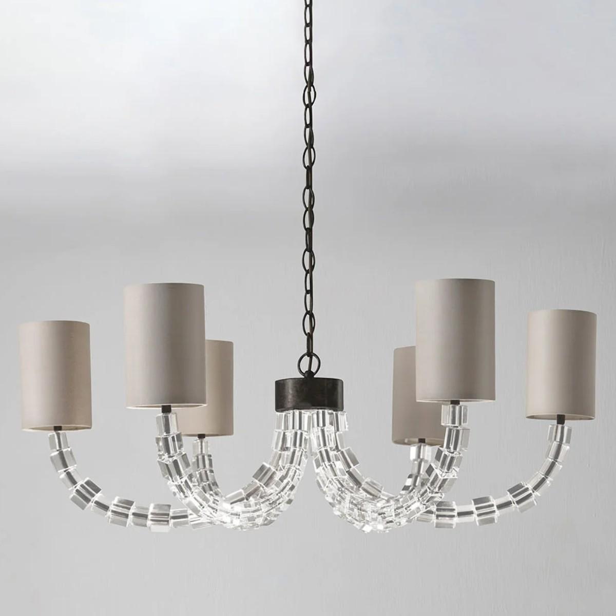 Made with hundreds of cast crystal cubes, this stunning piece has its roots firmly planted in the classical style, and yet has a modern freshness and simplicity that has made it one of Porta Romana's most popular pieces. Versatile enough to work with both antique and contemporary interiors, it whispers cool chic and is named after the stylish French photographer of the early 20th Century. Burnt Silver shown with 4" Cylinder in Putty Silk with Cream Card lining. Many Porta Romana pieces are fully customisable. Products can be scaled up or down, proportions can be changed, and designs can be painted to your choice. Please contact us for options and best pricing. For all orders going to the US, an 85% UL surcharge will be applied to account for US wiring requirements.