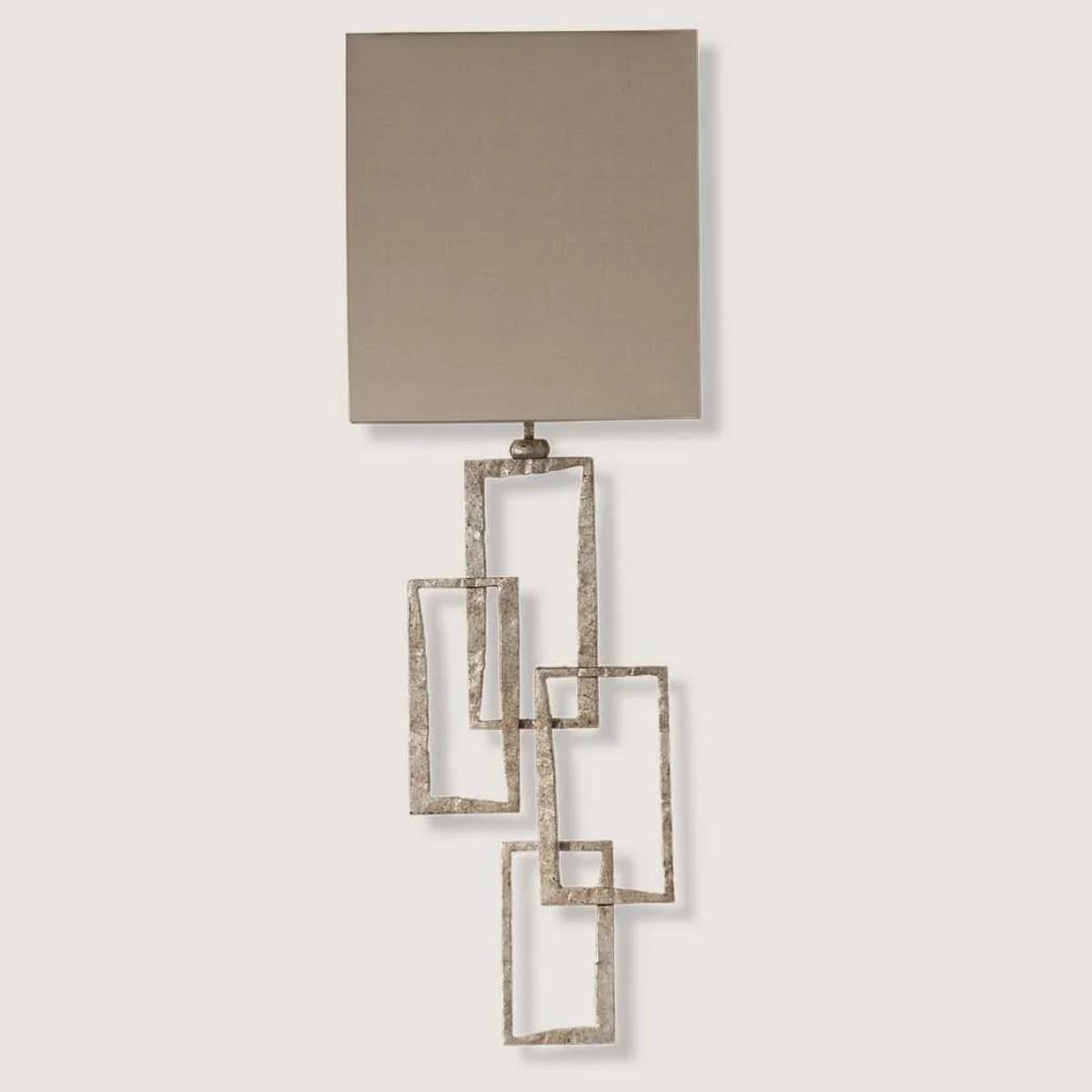 The Salperton pieces are characterised by their clean-cut, geometric forms and softly beaten metal bars. When lit, the piece forms a delicate silhouette. Decayed Gold shown with 9" Open Back Short Rectangle in Wren Satin with Cream Card lining. Many Porta Romana pieces are fully customisable. Products can be scaled up or down, proportions can be changed, and designs can be painted to your choice. Please contact us for options and best pricing.