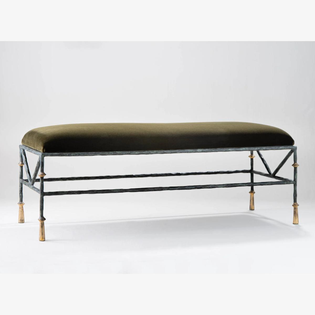 With its finial motifs, textured bar and cone-shaped feet, the Stanley Bench is inspired by the furniture designs of Diego Giacometti and can be custom made to any size or finish. Many Porta Romana pieces are fully customisable. Products can be scaled up or down, proportions can be changed, and designs can be painted to your choice. Please contact us for options and best pricing.