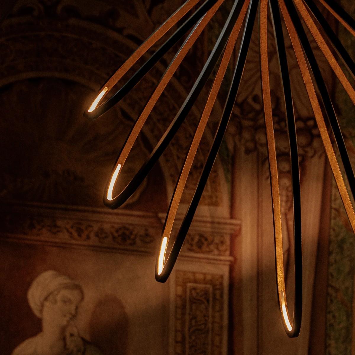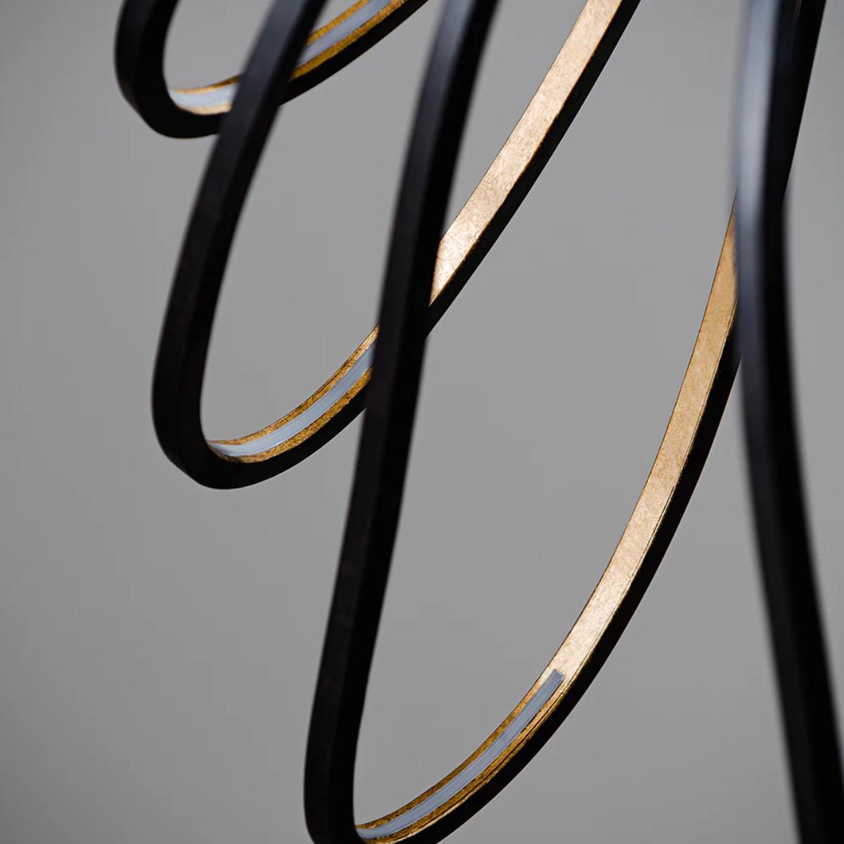 A stunningly sculptural and technically challenging design, the Sully ceiling light is engineered from hand-formed, square profile steel. A recess is created in the bottom radius to create an uplight and hand-painted with Bright Gold to reflect the light. A Bronzed painted finish is then applied to the outside to provide further contrast. Also available in any painted finish of your choice. Many Porta Romana pieces are fully customisable. Products can be scaled up or down, proportions can be changed, and designs can be painted to your choice. Please contact us for options and best pricing. For ALL Porta Romana orders going to the USA, a 20% wiring surcharge is applied to each item.