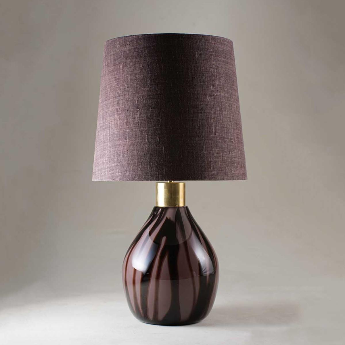 The Vespa Lamp takes its name from the Italian word for wasp. To achieve the Vespa’s markings, an additional layer of molten glass is added to the body of the piece during the glass-blowing process, meaning that the pattern on each Vespa is one-of-a-kind. Mauve with Brass Collar shown with 14" Bongo in Pecan Linen with Cream Card lining. Many Porta Romana pieces are fully customisable. Products can be scaled up or down, proportions can be changed, and designs can be painted to your choice. Please contact us for options and best pricing.