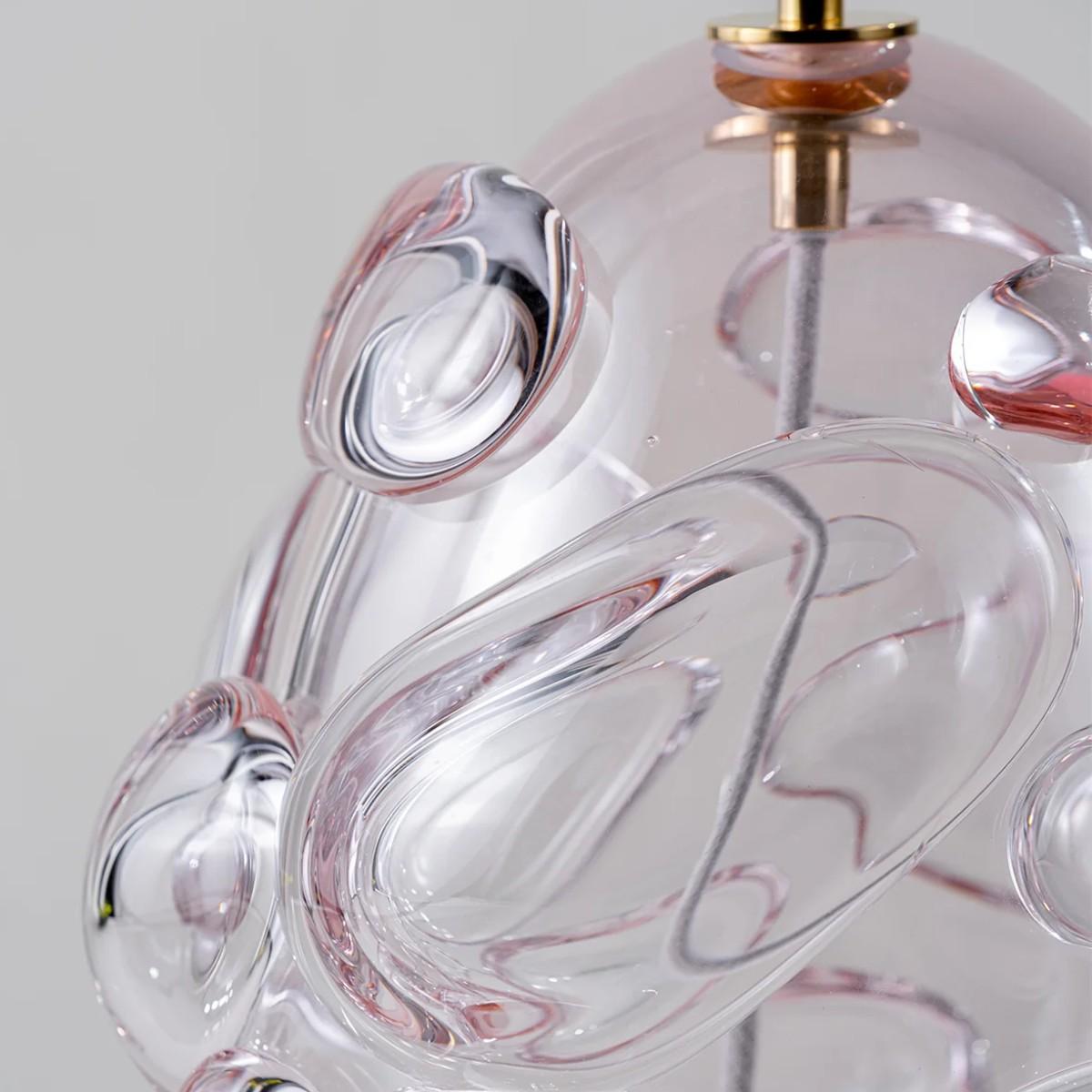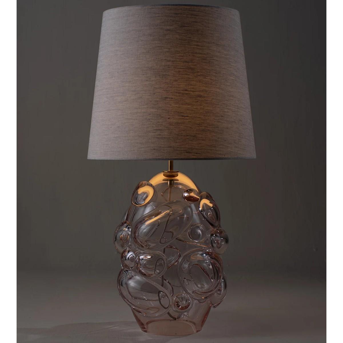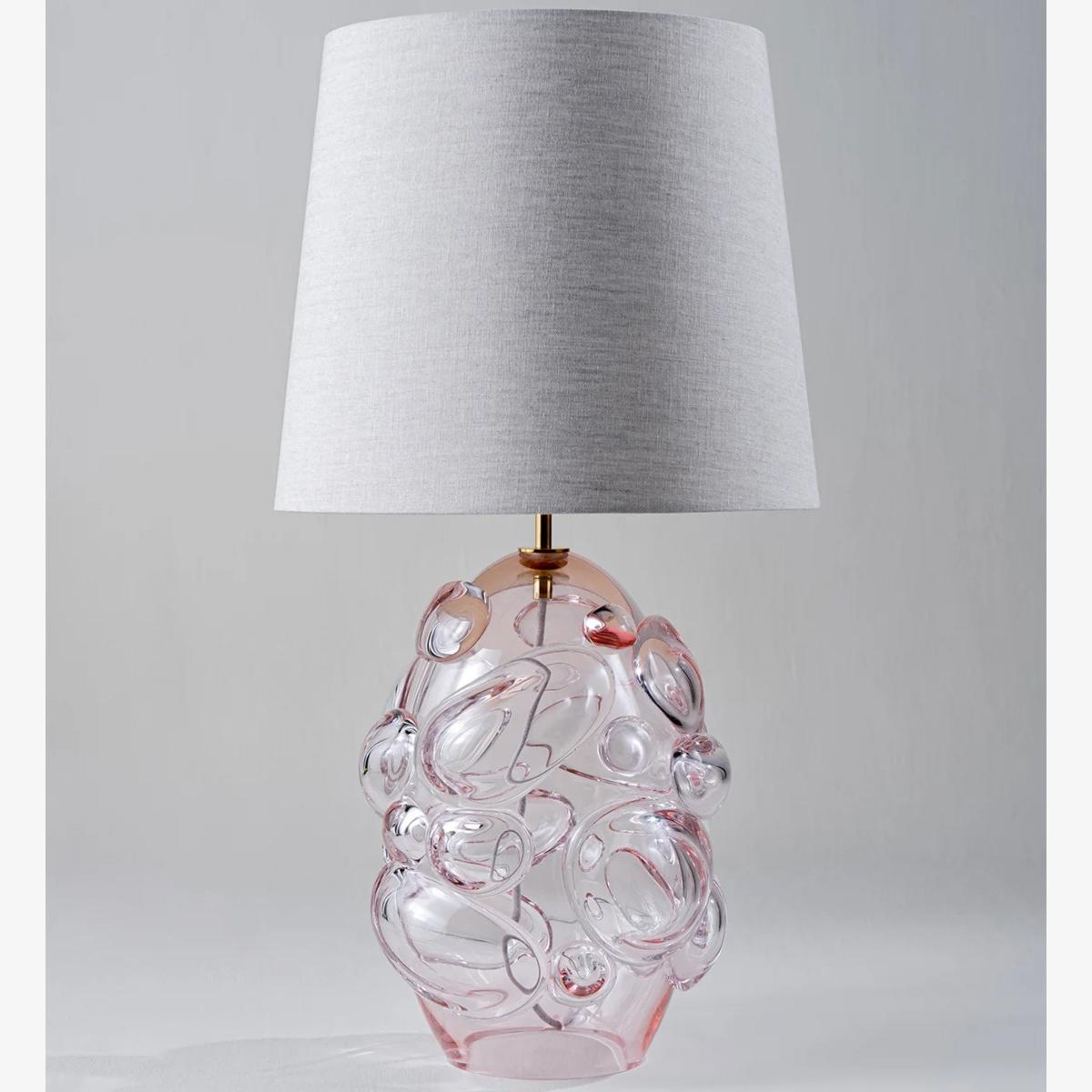 The Winnie lamp is a glass piece inspired by the dense and juicy bubbles generated during the honey pouring process. The playful characteristic of the lamp, named after fictional Winnie-the-Pooh, is achieved by the addition of irregular bubbles on the glass surface. Bubblegum shown with 16" Bongo in Natural Linen and Cream Card lining. Many Porta Romana pieces are fully customisable. Products can be scaled up or down, proportions can be changed, and designs can be painted to your choice. Please contact us for options and best pricing.