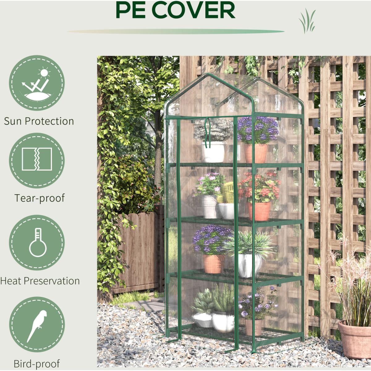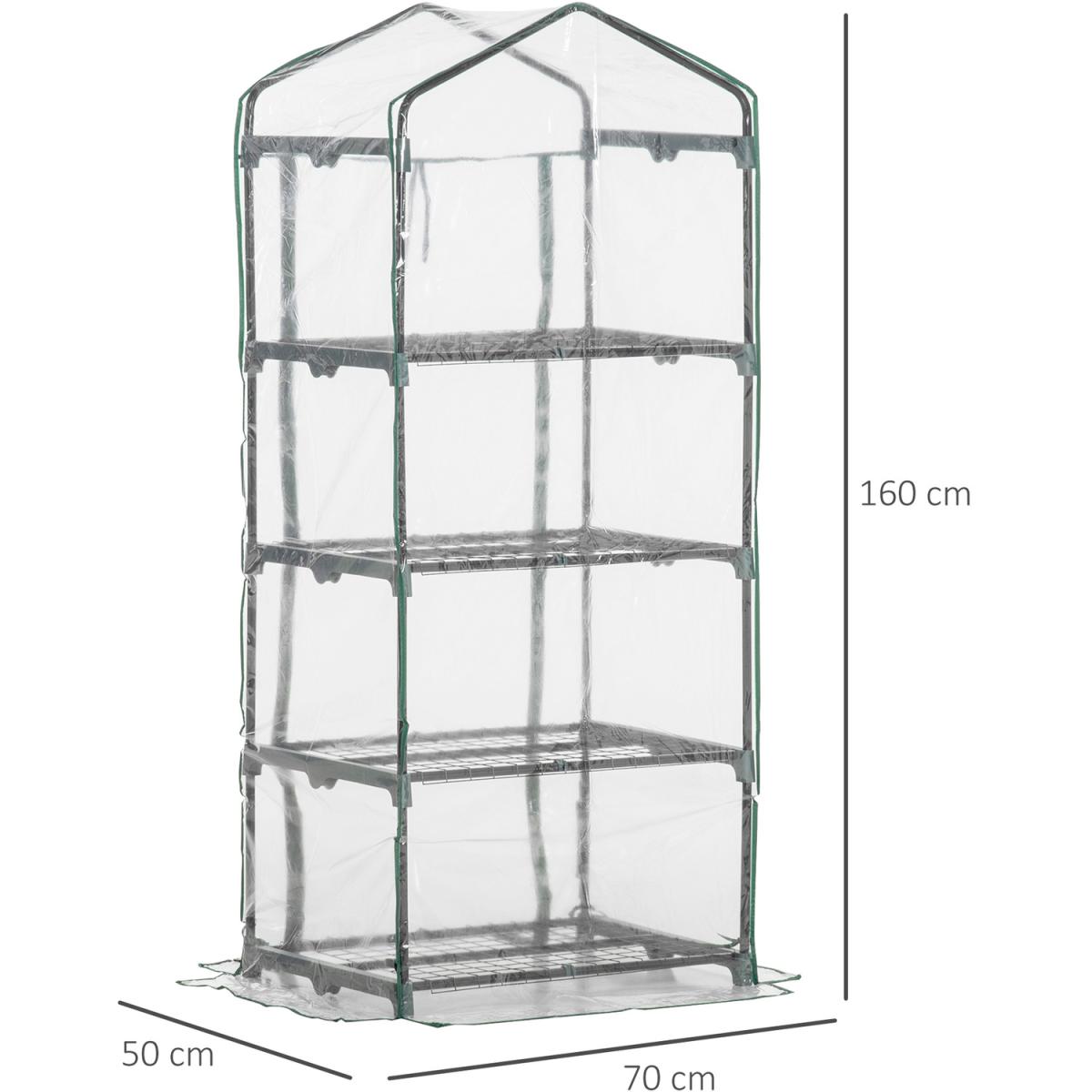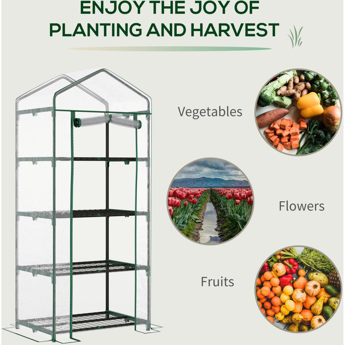Protect and grow your plants in cold weather outside with this portable greenhouse from Outsunny. Made with a strong powder coated steel frame, it features four inside shelves to keep your plants, herbs and vegetables neatly displayed and organised. On the outside is a transparent PVC cover which allows sunlight to reach the flowers and plants, and it is finished with two zips for quick and convenient access. It's ideal for those with little space, such as balconies and patios.