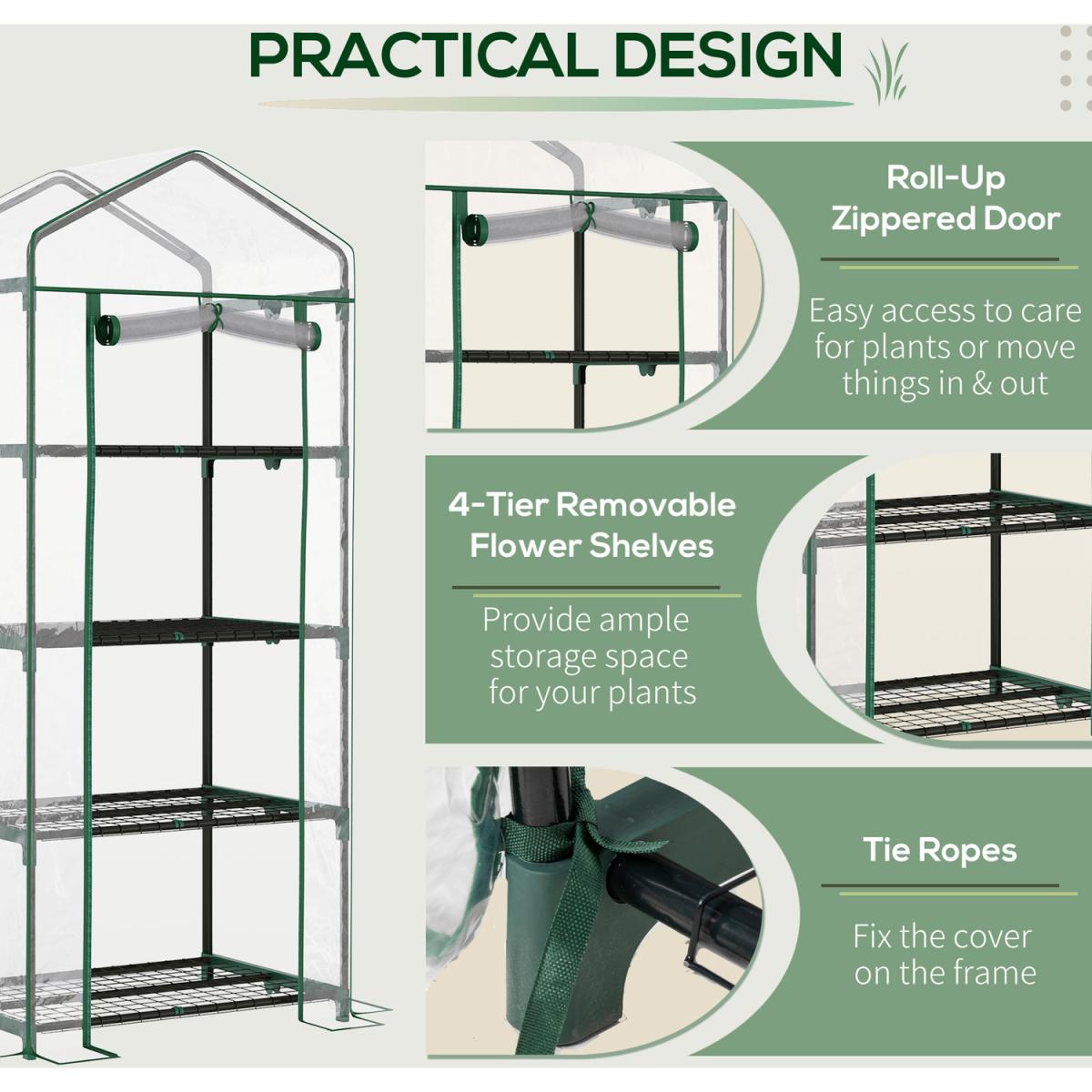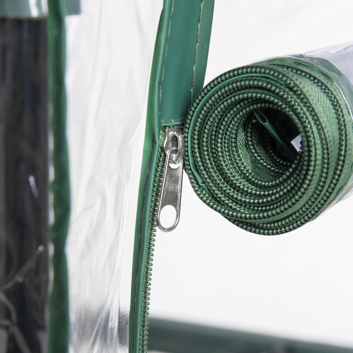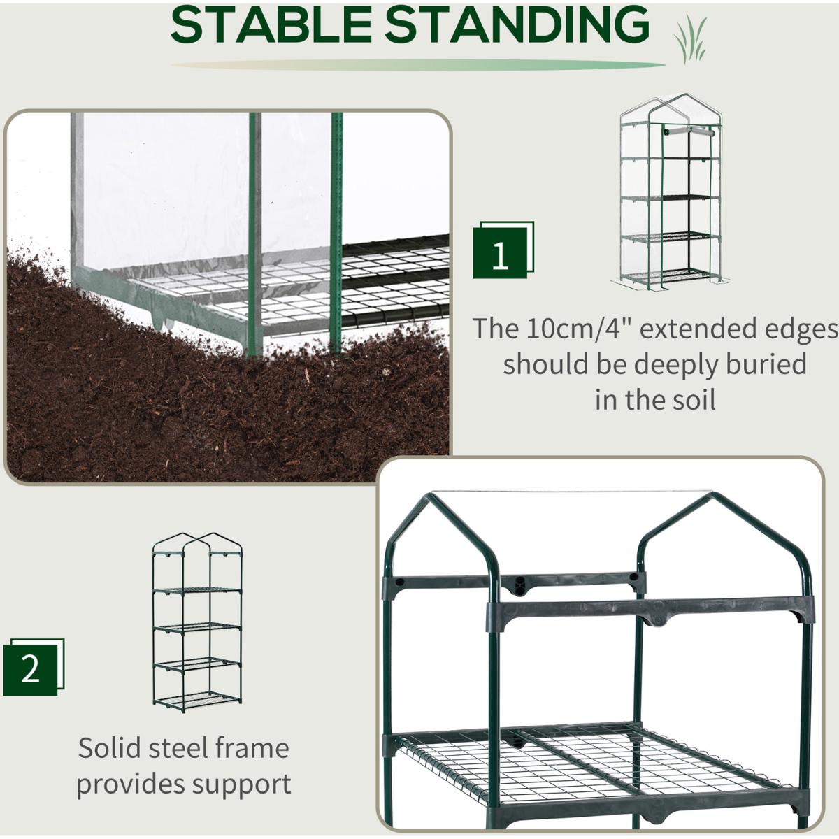 Protect and grow your plants in cold weather outside with this portable greenhouse from Outsunny. Made with a strong powder coated steel frame, it features four inside shelves to keep your plants, herbs and vegetables neatly displayed and organised. On the outside is a transparent PVC cover which allows sunlight to reach the flowers and plants, and it is finished with two zips for quick and convenient access. It's ideal for those with little space, such as balconies and patios.