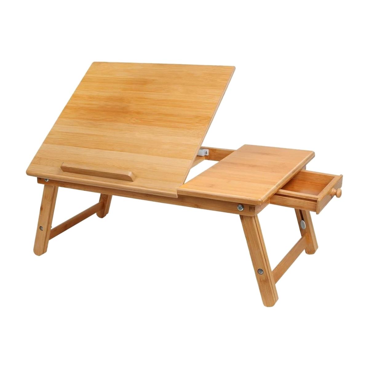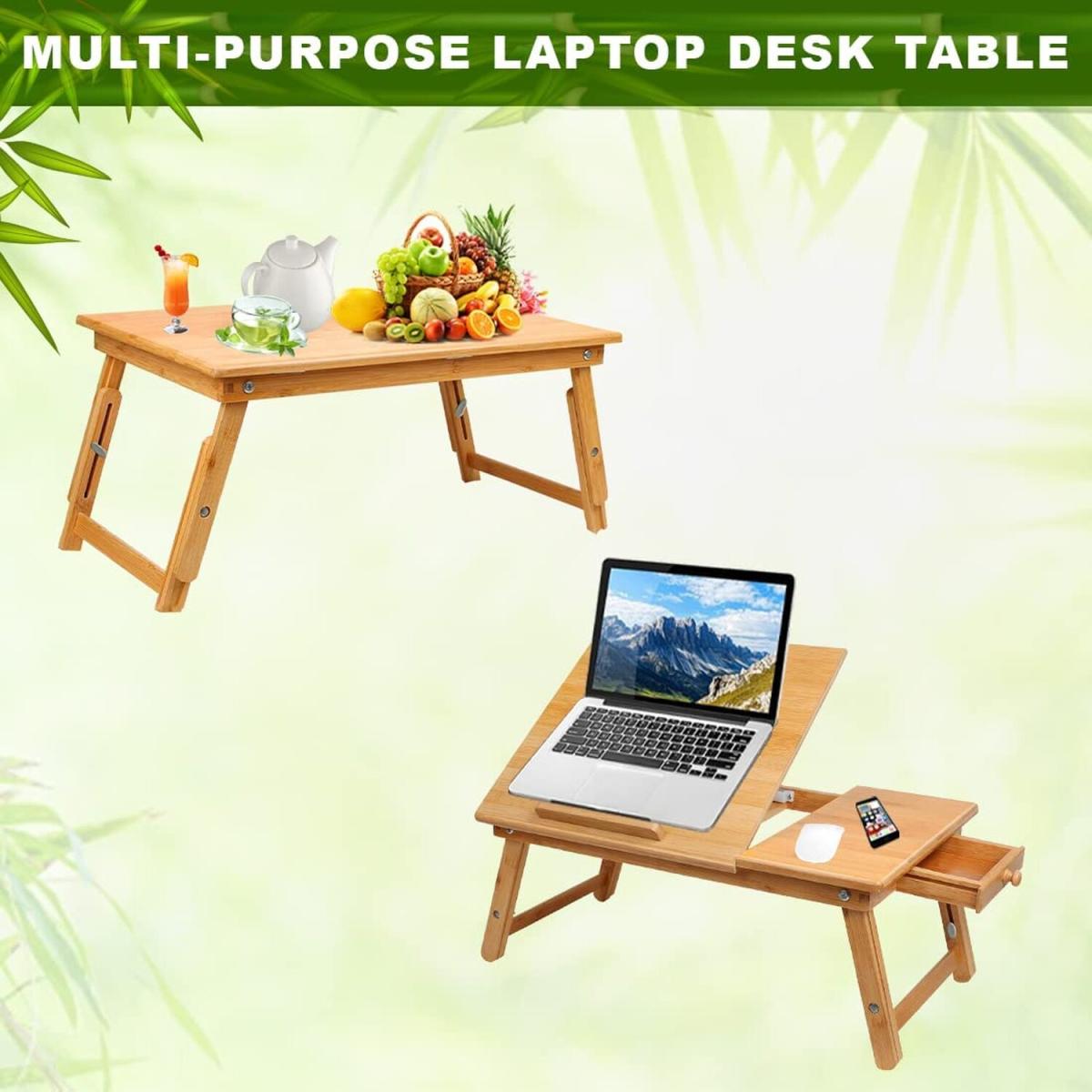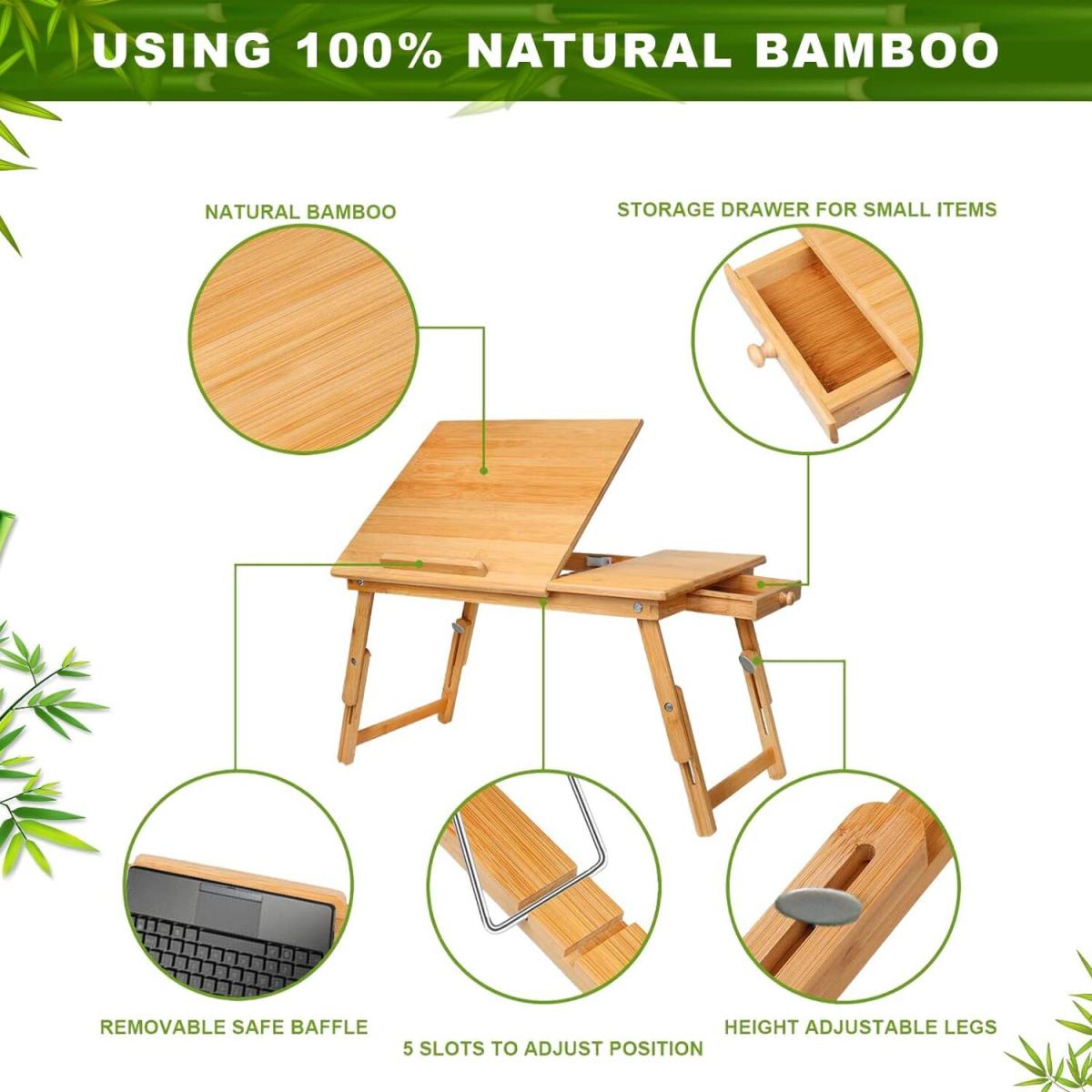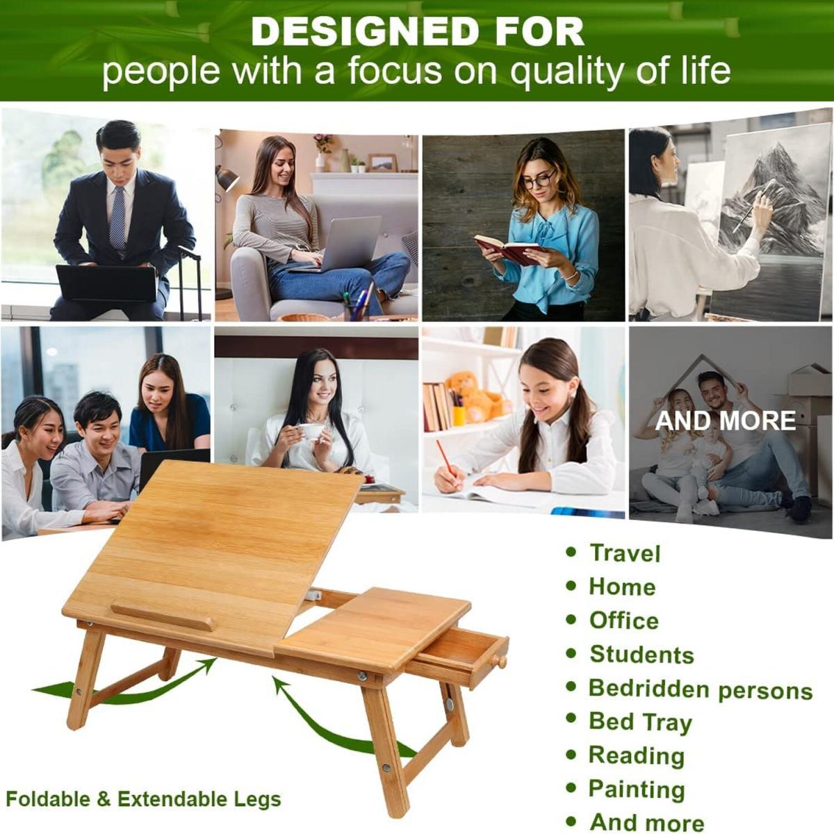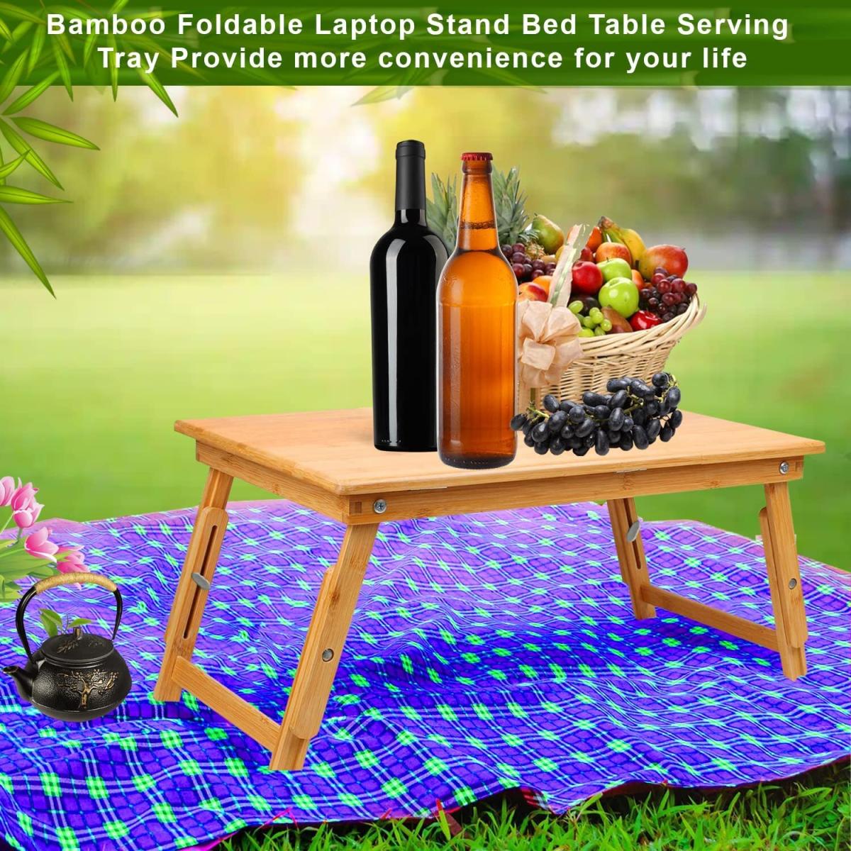 The Mantra Raj Portable Bamboo Laptop Computer Stand is designed to give you not just the comfort while working but also the best style. Adjustable Height and Viewing Angle for Surfing Reading Writing Eating The height is adjustable from 22cm 30cm and with 5 different viewing angles this laptop desk stand really allows you to work standing up, on your lap, on the sofa and even in bed. Perfect for 15.6 inch laptops. The flat surface makes this Folding laptop desk table ideal as a Serving Tray, breakfast tray or Standing Desk for office workers ect, the bed tray always plenty of space for you to surf the net, read or do arts and crafts while sitting on the sofa or having breakfast in bed.