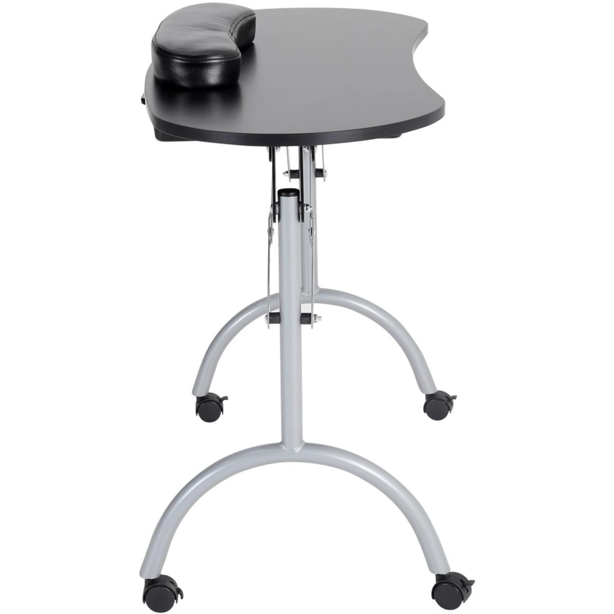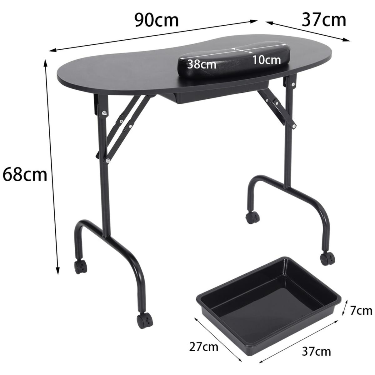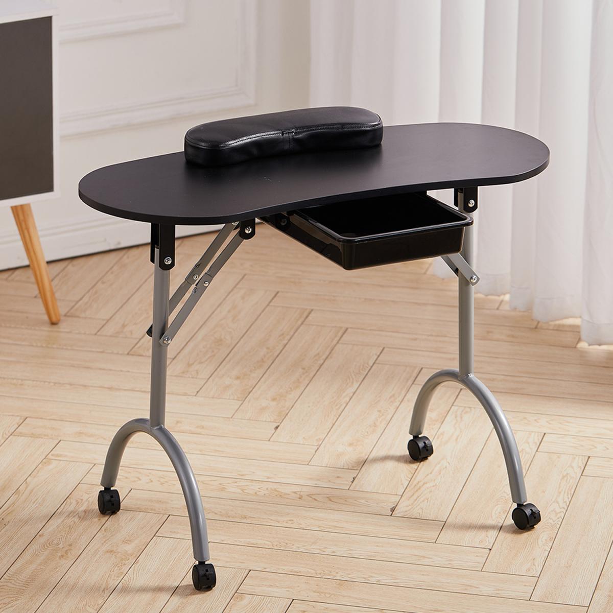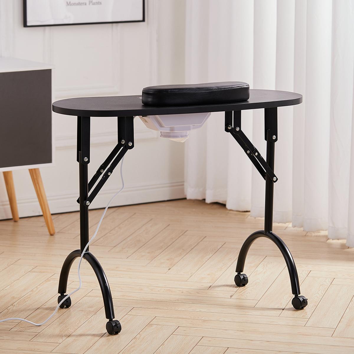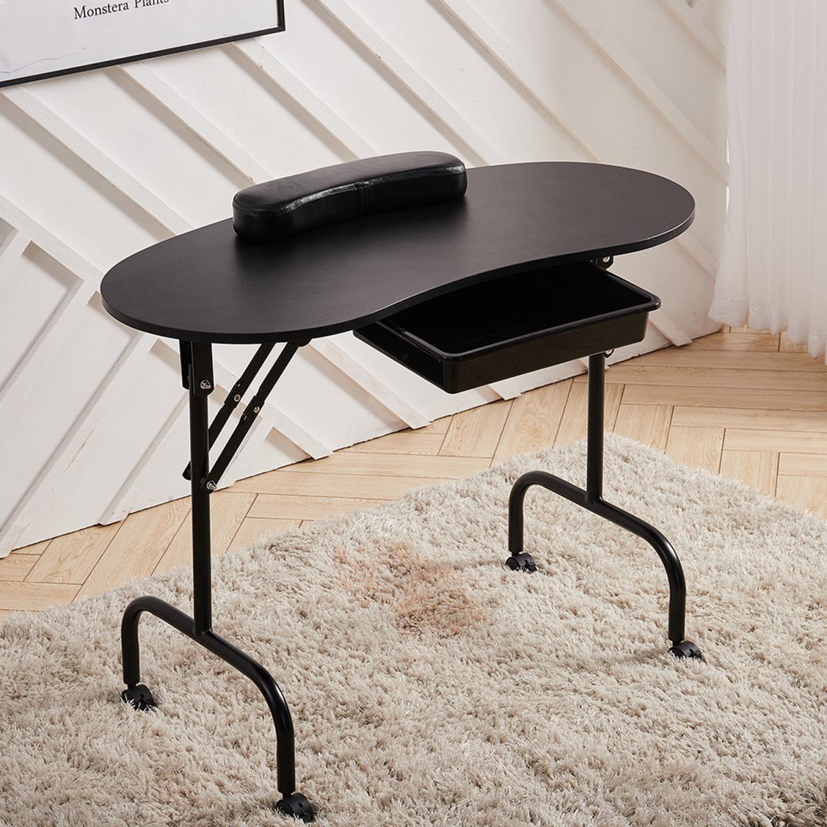 I really like this portable folding nail desk for its practicality and versatility. Its sleek black finish and compact design make it ideal for smaller spaces or mobile setups, like beauty vans or home salons. It works well in contemporary interiors due to its minimalist style, but can also complement more industrial or modern decor schemes. To style it effectively, consider pairing it with organised storage solutions or a simple chair for a streamlined look. When not in use, it folds away easily, which is a great space-saving feature, making it perfect for flexible or multi-functional rooms.