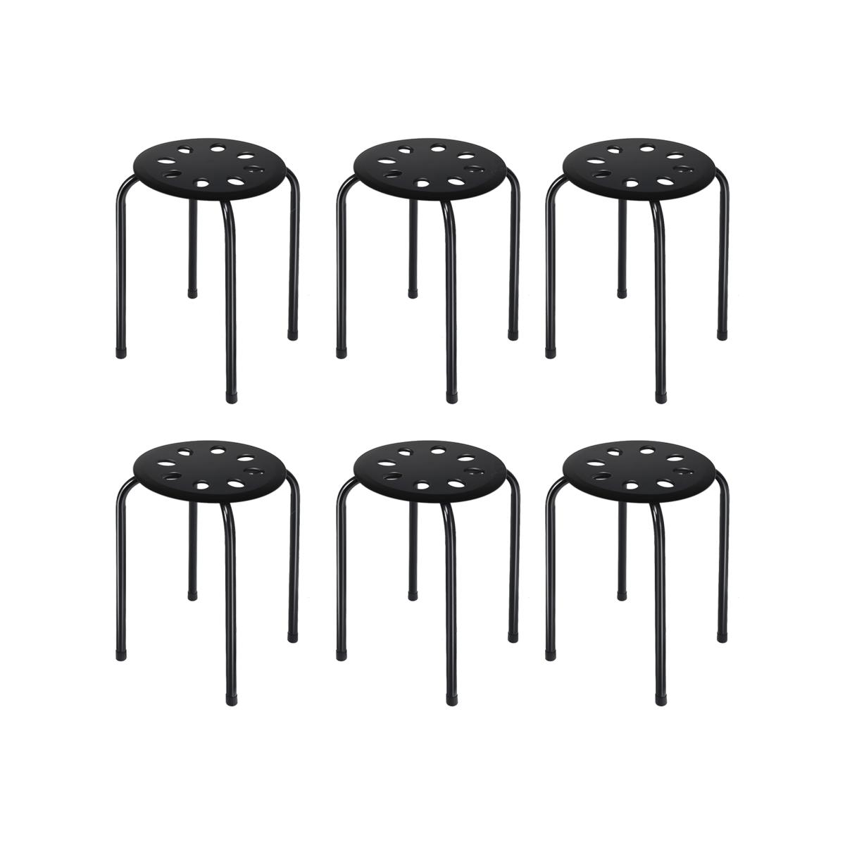 Our 6 portable stools is the perfect complement to your home! The sturdy steel frame with painted finish makes these stools corrosion-resistant and durable. And X-shape structure ensures great stability and safety. PP seat with 8 breathable holes will provide a comfortable sitting feeling. Each stool is equipped with non-slip foot pads to prevent the floor from being scratched. What's more, stackable and compact design is space-saving for easy storage. The stool set is widely used in classroom, home and office. You can use them as temporary seats for friends at parties.
