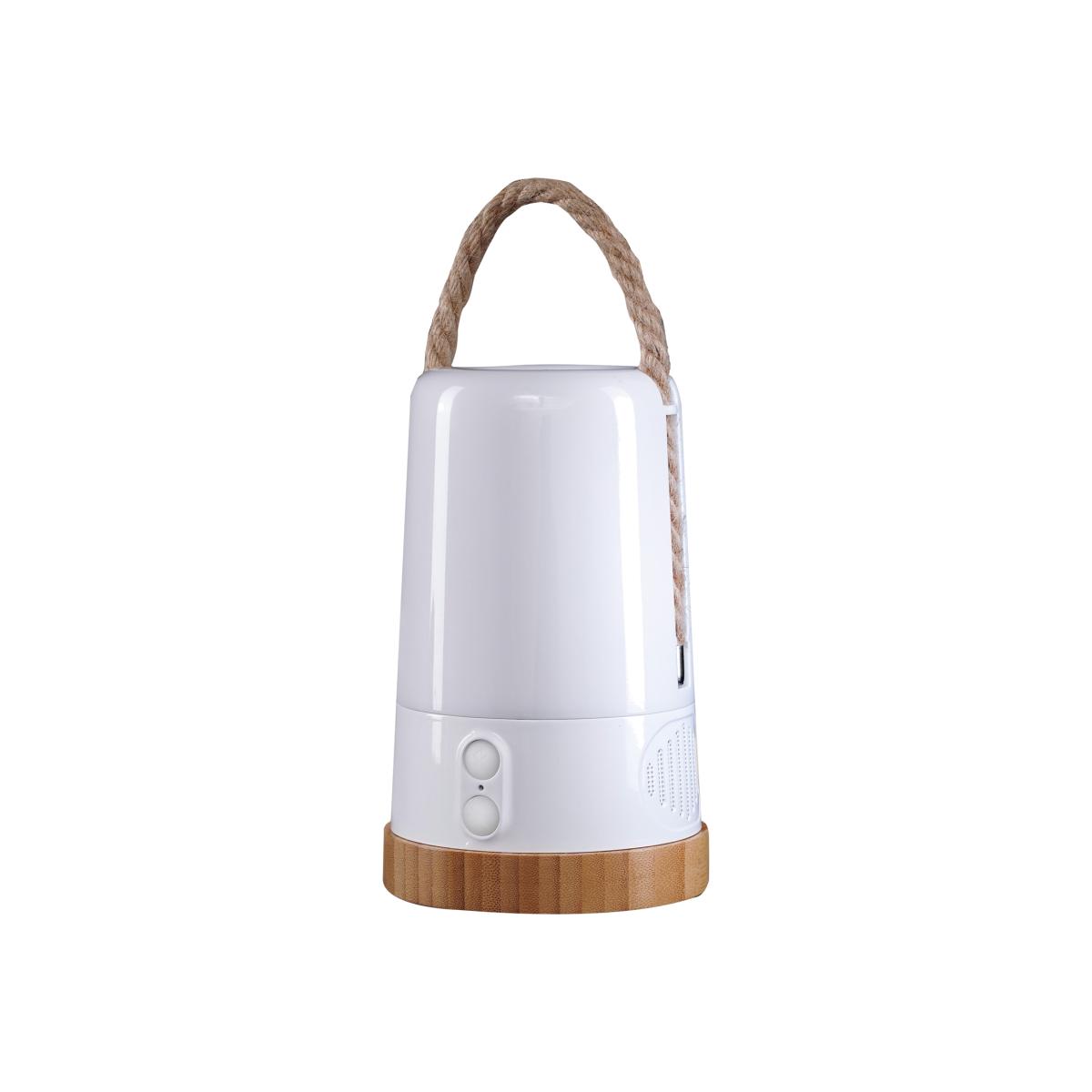 This Portable Rechargeable Lantern is packed with features, including a Bluetooth Speaker. The 3.2W LED light emits a 3000. K warm light and has five lighting modes Low 40 lumens, Medium 150 lumens, High 260 lumens, Amber and Colour Changing. The speaker can be connected via Bluetooth to a phone so that you can play your music or to another lantern and In the Amber and Colour Changing modes, the light will operate in rhythm to the music. Double 3W speakers provide 360 surround sound whilst a bass diaphragm in the top of the light combines to provide excellent quality sound. The 3.7V 5200m. Ah battery charges in around 7 hours and provides around 8 hours use for the light or speaker and four hours use for the light and speaker together. The Lantern has a strong handmade hemp rope handle, ideal for hanging the lamp. At around 500g in weight, it is portable and perfect for indoor or outdoor use. Enjoy atmospheric lighting and music wherever you are.