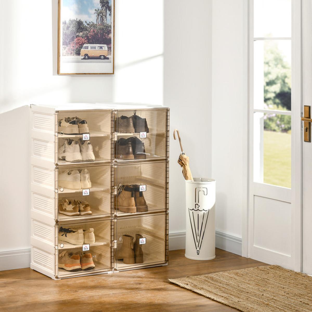 I really like this shoe cabinet because of its practicality and versatility. Its folding design makes it perfect for smaller spaces or those who prefer a flexible storage solution; the ten compartments are ideal for keeping footwear organised and easily accessible. It works well in a variety of interiors, from casual hallways to modern entryways, especially when paired with simple, neutral décor. For styling, consider placing it next to a cosy bench or a mirror to create a functional yet stylish entry area. Choosing a colour that complements your flooring or furniture, like this white or brown variant, helps it blend seamlessly into most schemes. Overall, it’s a smart and neat option that keeps clutter out of sight without sacrificing aesthetic appeal.