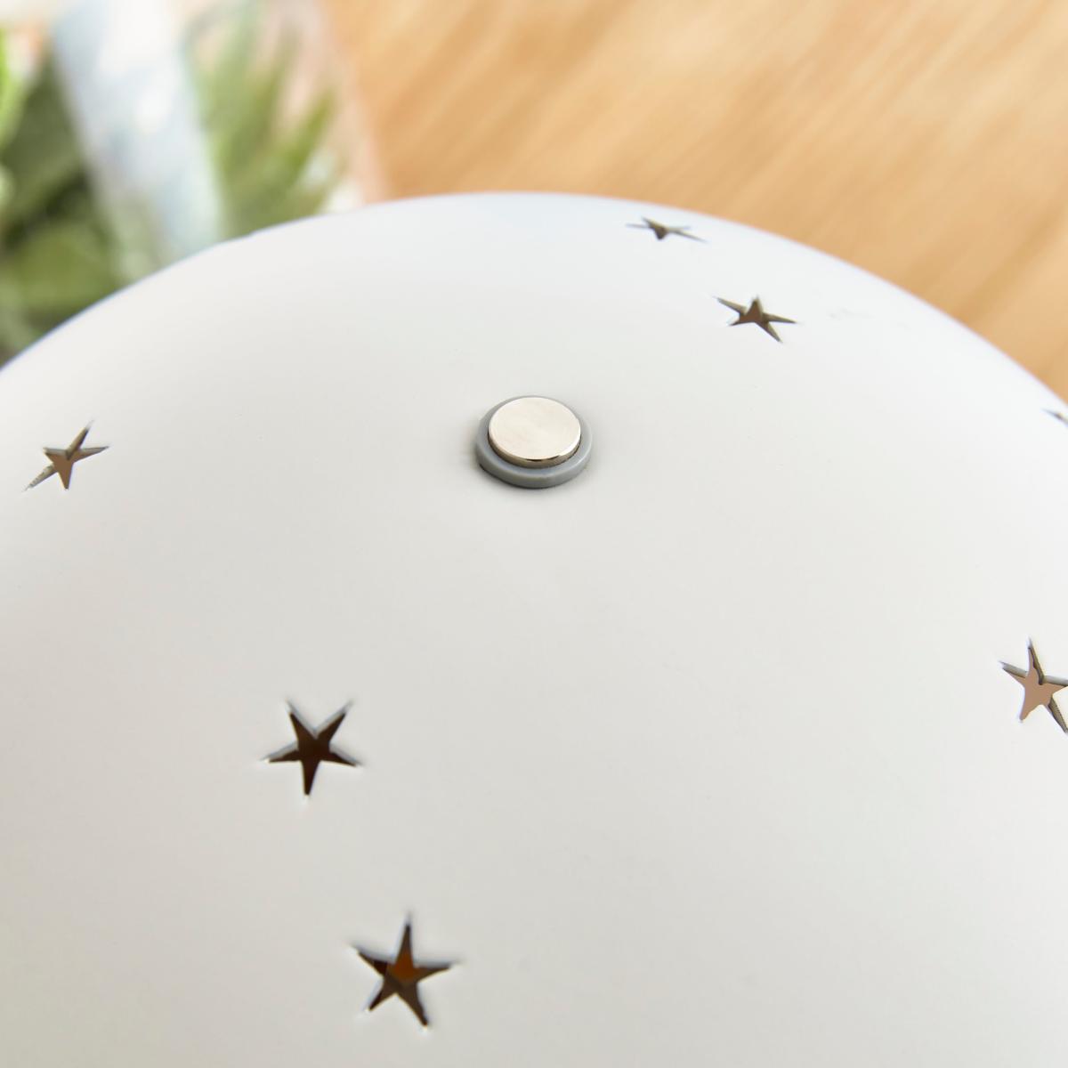 * Beautiful Star Design* Classic Domed Head* Integrated LED Light* Rechargeable Technology* 3-Stage Touch Dimmable* Includes USB Type-C Cable Brighten up your child's room with the enchanting Portable Star Rechargeable Touch Dimmable Table Lamp, designed to spark imagination and wonder. Its captivating star-cutout design casts delightful shadows when placed near a wall, creating a magical ambience that children will adore. Featuring a domed head for a classic touch, this lamp also boasts rechargeable technology, allowing you to conveniently charge it up with the included USB cable and place it anywhere without the hassle of cords. The 3-stage touch dimmable feature lets you adjust the brightness to suit various activities or moods, from bedtime stories to playtime adventures. Please Note: This lamp contains an integrated LED light source that is non-replaceable; however, it will use less energy than conventional lamps. It will last an average of 25,000 hours based on 8 hours usage a day.