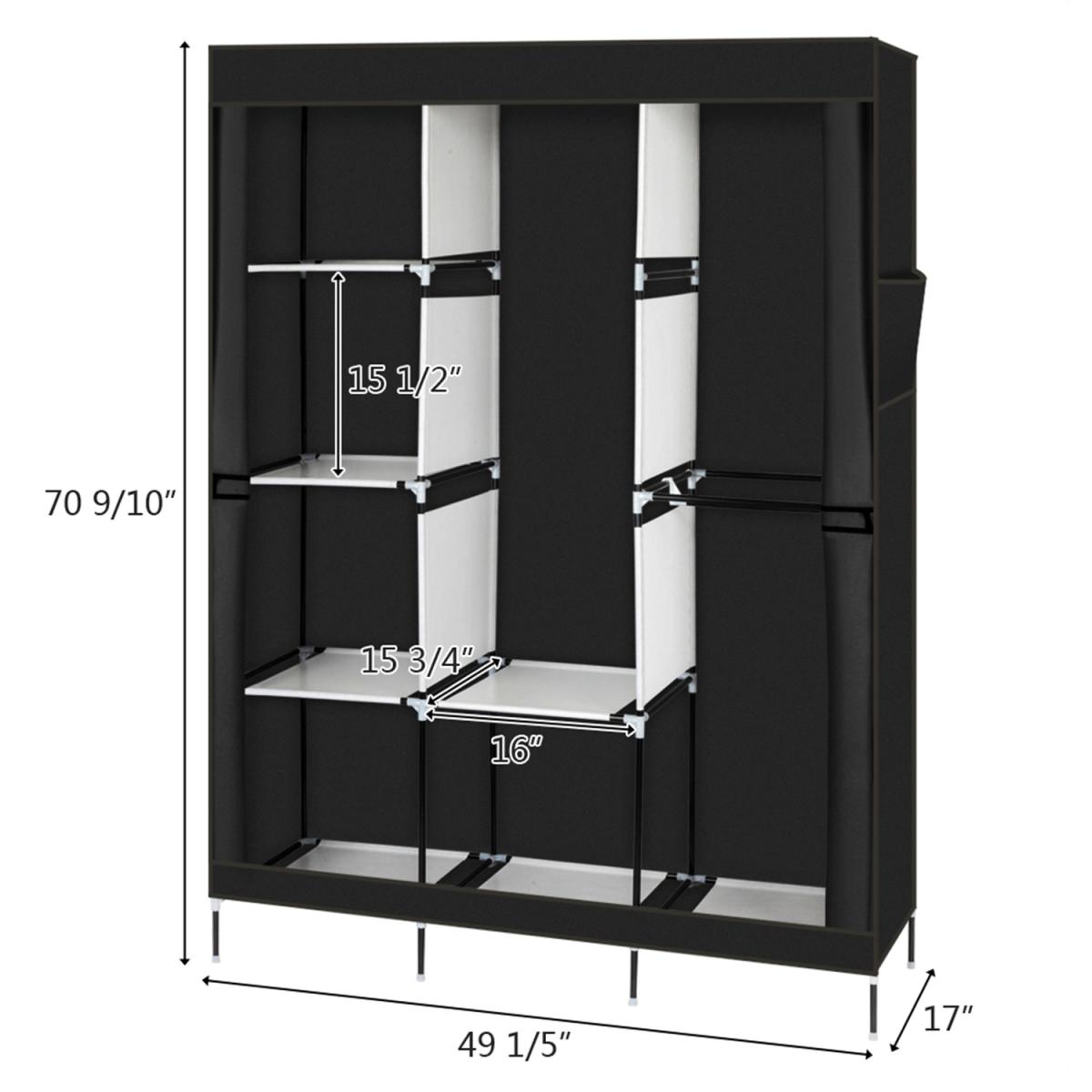 Our 71" Portable Closet Storage Organizer Clothes Wardrobe has a Non-Woven Fabric Cover, High Quality Steel Tube and PP Plastic Connectors. This portable wardrobe is durable and will meet your long or short term storage needs. The generous size of the wardrobe makes it well suited for organising your clothes and walk-in wardrobe. The movable clothes hanging rail and 8 storage shelves offers plenty of space for longer hanging outfits and folded clothes. The zippered dustproof cover keep your items away from dust and the water-proof fabric tiers are easy to clean.