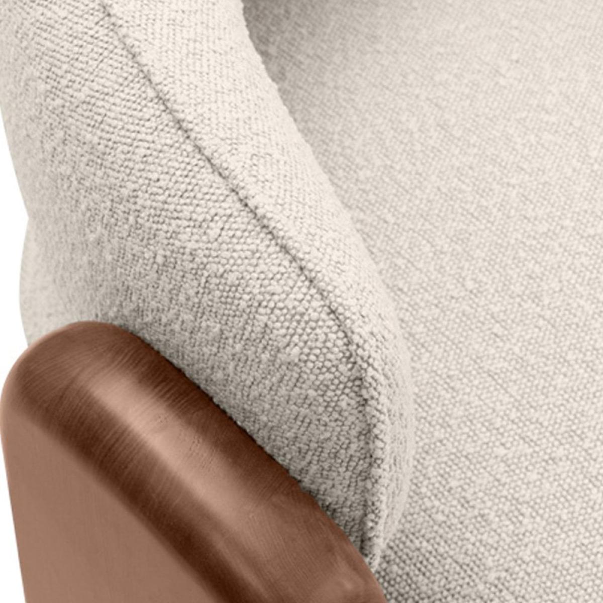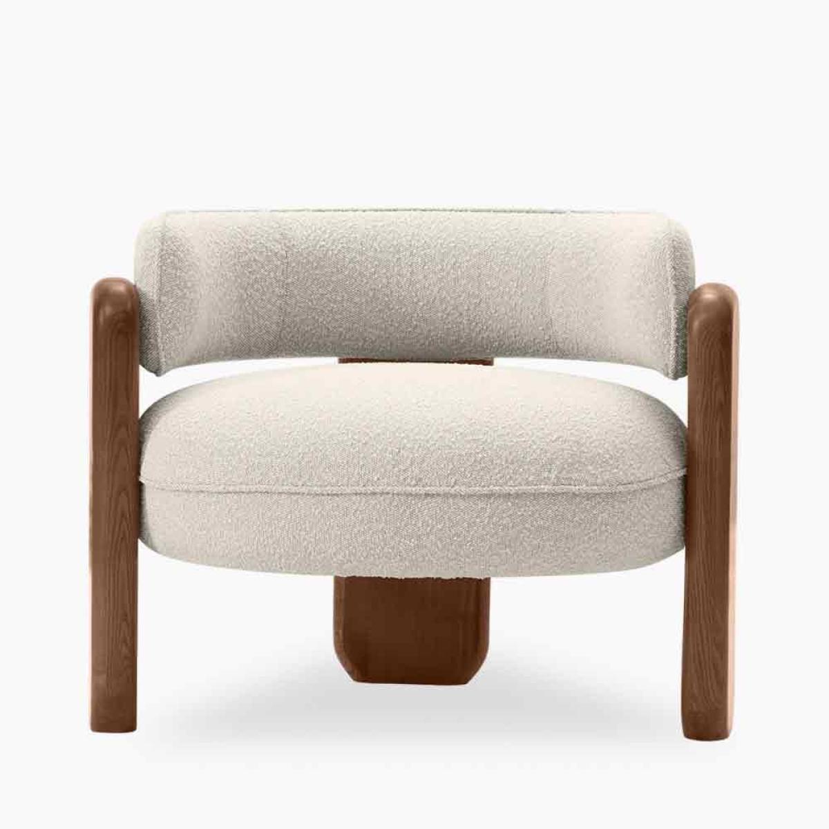 A statement piece will reinvigorate your living room. The Porter Boucle Armchair has retro styling, organic curves, and relaxed lines, whilst the contrast between the rich wood and speckled stone boucle in natural creates a natural organic feel. The softness of the boucle adds a relaxing element to this 70s Revival-inspired design. For a rich depth of colour and unique softness, our boucle used in this chair is not only of the highest quality but it is made from recycled PET yarns so it is kinder to the environment too.