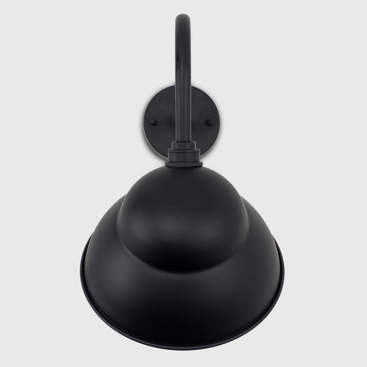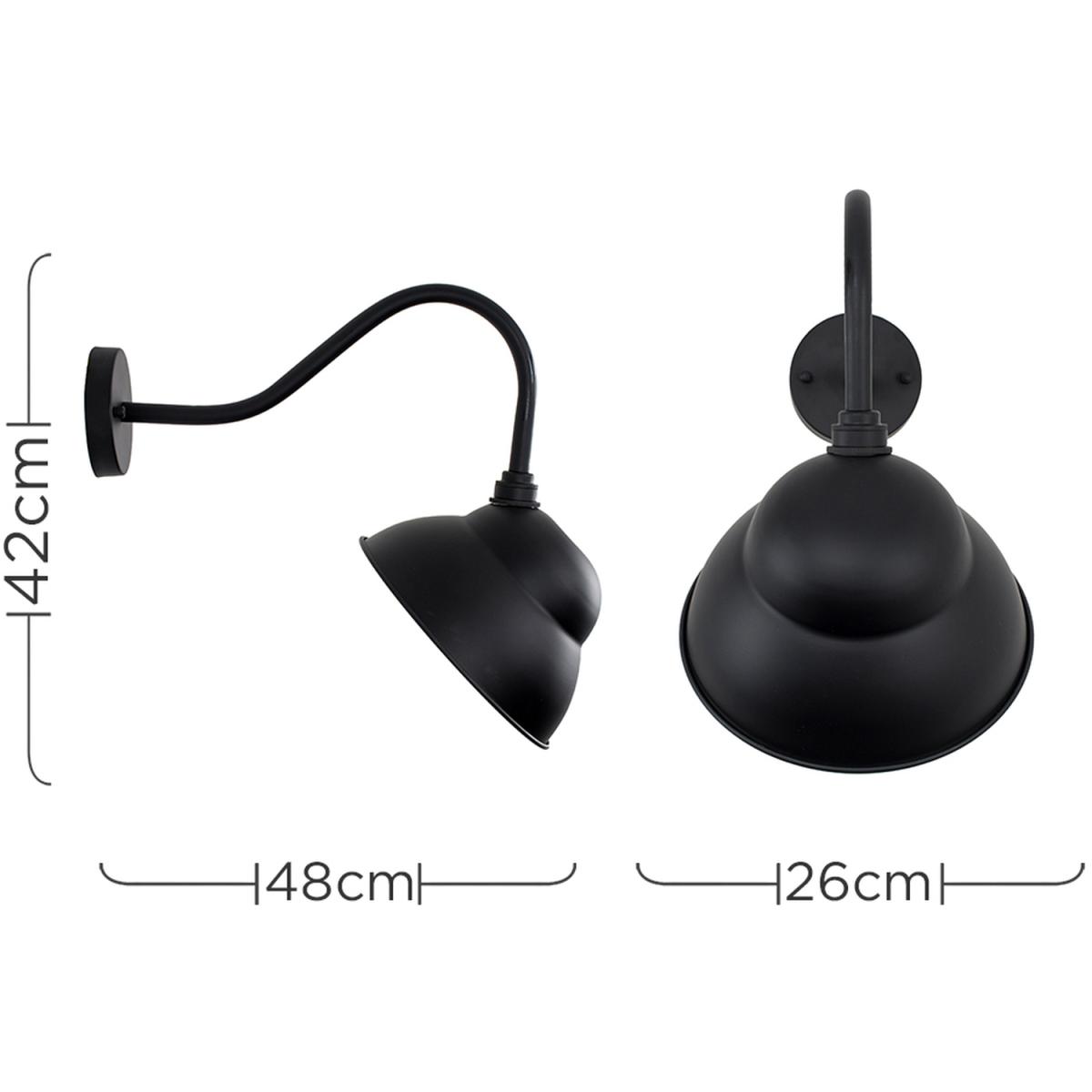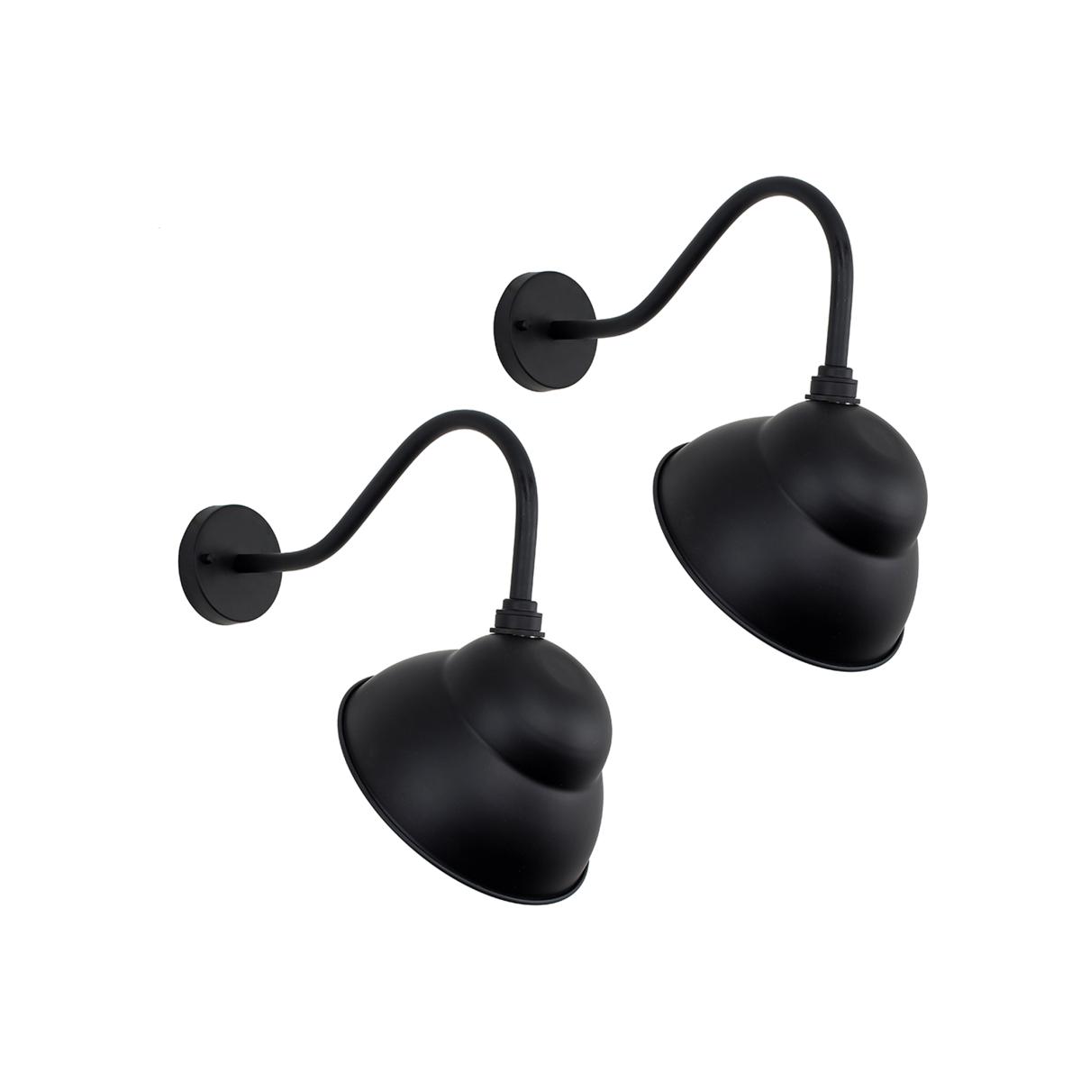 A pair of modern yet traditional pub style swan neck outdoor wall lights with dome shaped light shades in a satin black metal finish. They have an IP23 rating making it suitable for outdoor installation but must be kept away from direct rainfall. An ideal product to help create a warm and inviting glow to doorways and external walls Perfect for hotels, pubs, shops, restaurants and other commercial premises