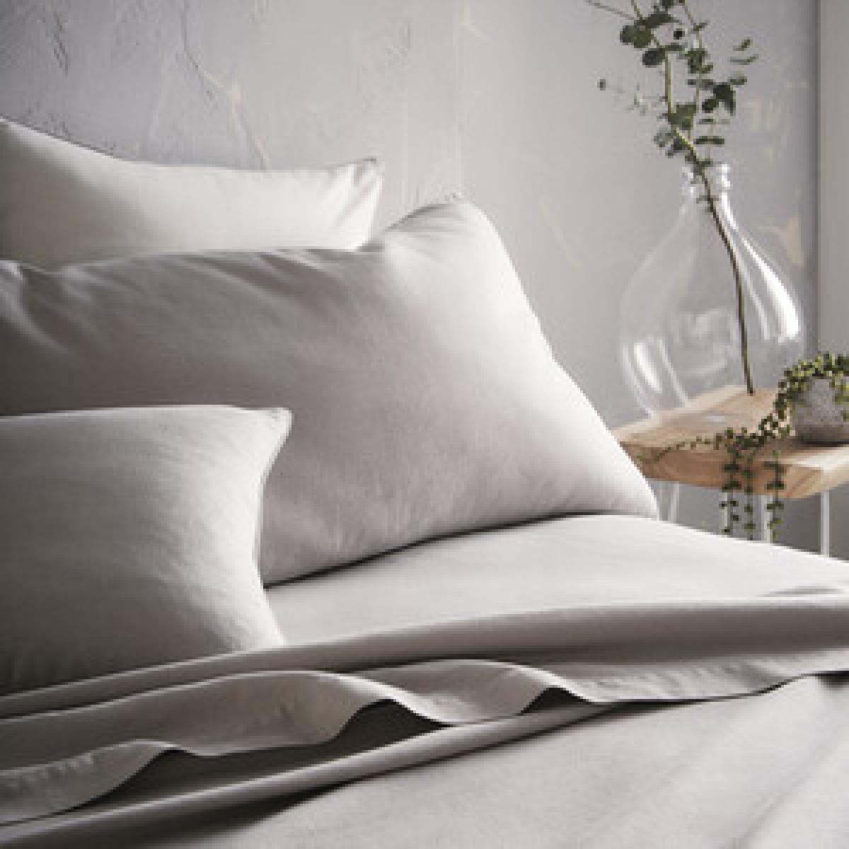 This environmentally-friendly and hypo-allergenic Aspect Fitted Sheet from Portfolio Home is crafted from a blend of cotton and linen and comes in natural white and soft silver grey. Retaining heat throughout the winter months but remaining light and breathable to keep you cool in the summer, this fitted sheet can be paired with matching duvet sets, quilted throws, and cushions or used as a canvas for some bold and colourful prints.