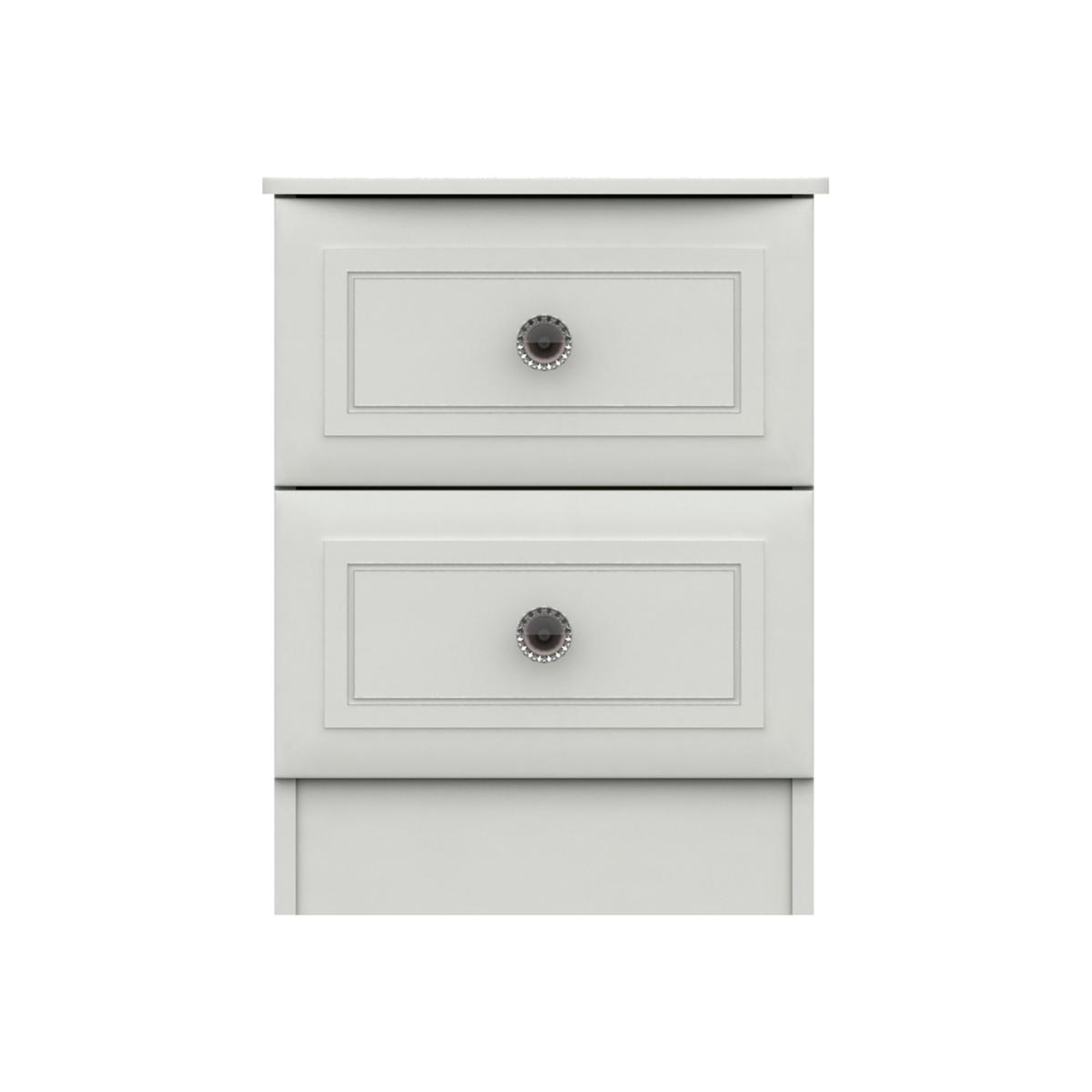 Finished in a choice of white and fired earth melamine finishes, the Portia 2 Drawer Bedside Table offers a stunning timeless design, perfect for enhancing any bedroom space. This stylish bedside unit offers a traditional styling, with its elegant bevelled edge profile drawer fronts with beautiful crystal look handles. Supplied fully assembled for convenience, the Portia comes with two spacious drawers, complete with 8mm heavy duty bases, linen look insides and easy glide metal runners. Please note, unfortunately we can not deliver this item to the Channel Islands, Ireland, Isle of White, Isle of Man or the Scottish Islands. Please note, this item cannot be delivered to Jersey.