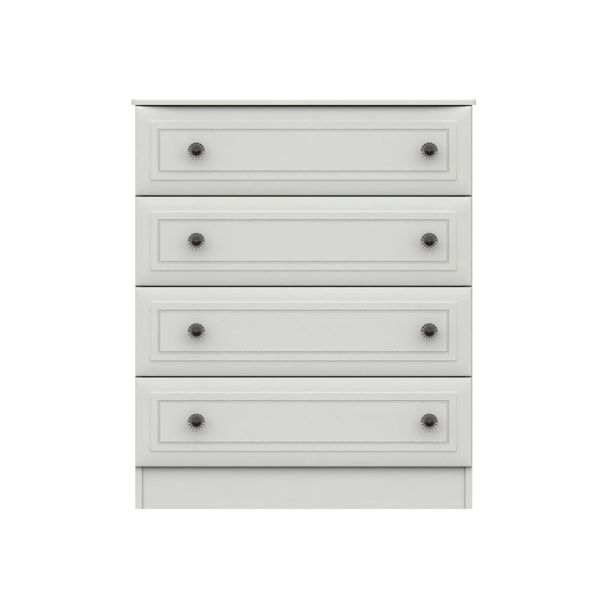 The Portia 4 Drawer Chest offers a stunning timeless design, perfect for enhancing any bedroom space. This stylish chest of drawers offers a traditional styling, with its elegant bevelled edge profile drawer fronts with beautiful crystal look handles. Supplied fully assembled for convenience, the Portia comes with three spacious drawers, complete with 8mm heavy duty bases, linen look insides and easy glide metal runners. Please note, unfortunately we can not deliver this item to the Channel Islands, Ireland, Isle of Wight, Isle of Man or the Scottish Islands.