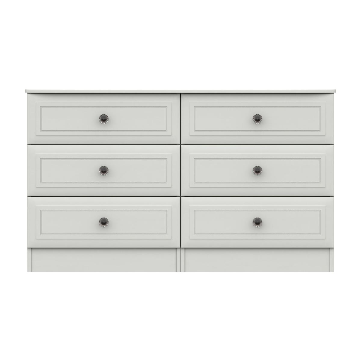 The Portia 6 Drawer Wide Chest offers a stunning timeless design, perfect for enhancing any bedroom space. This stylish chest of drawers offers a traditional styling, with its elegant bevelled edge profile drawer fronts with beautiful crystal look handles. Supplied fully assembled for convenience, the Portia comes with six spacious drawers, complete with 8mm heavy duty bases, linen look insides and easy glide metal runners. Please note, unfortunately we can not deliver this item to the Channel Islands, Ireland, Isle of Wight, Isle of Man or the Scottish Islands. Please note, this item cannot be delivered to Jersey.