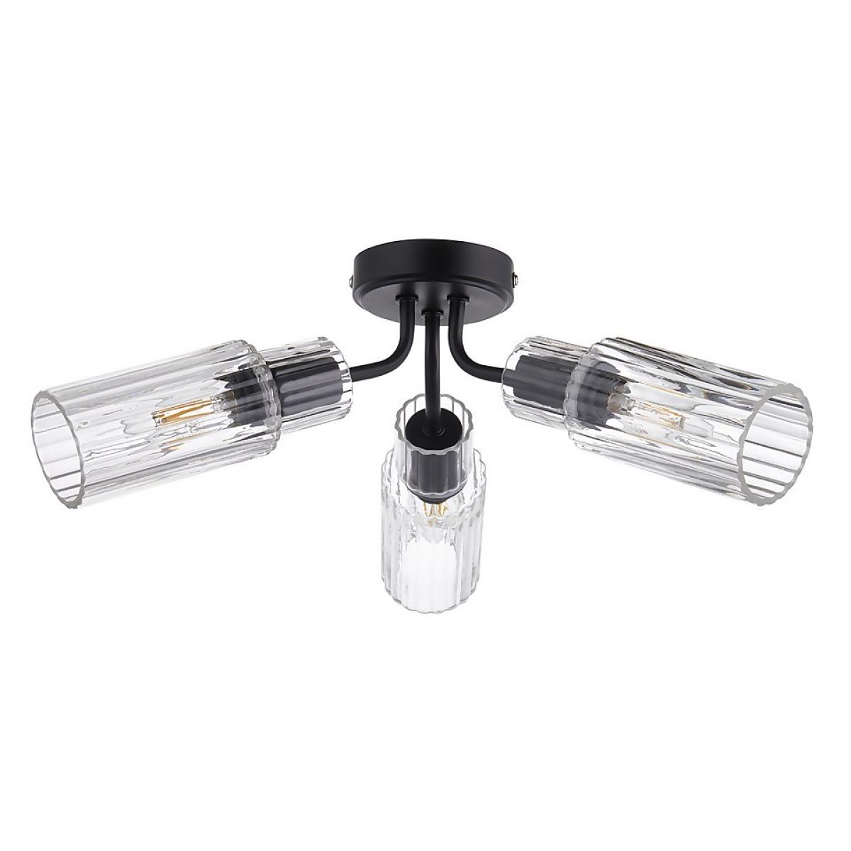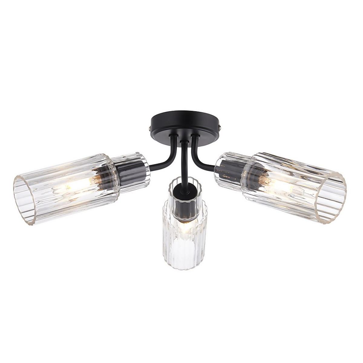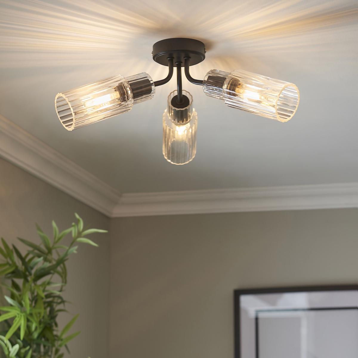 Our Portland ceiling light with its contemporary fluted glass and matt black finish is a great addition to any room. The glass shades produce a stunning light effect. Perfect for rooms with low ceilings.