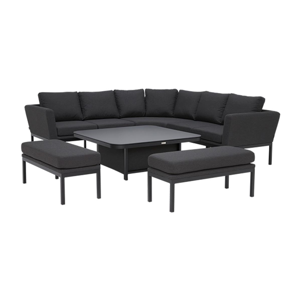 Portland Deluxe Square Corner Dining Set with Rising Table, Charcoal Portland Deluxe Square Corner Dining Set with Rising Table, Black | Barker & Stonehouse