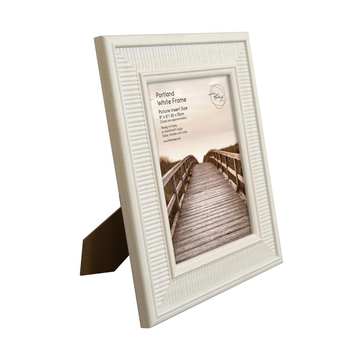 The Portland Frame is an elegant, simple frame suitable for any photo. The frame has a subtle textured finish to create modern depth and dimension in your space, highlighting your image in style without distracting from it. The classic white tone is easy to coordinate in your room, and the frame is perfect for hanging via hooks or standing on shelves and accent tables.