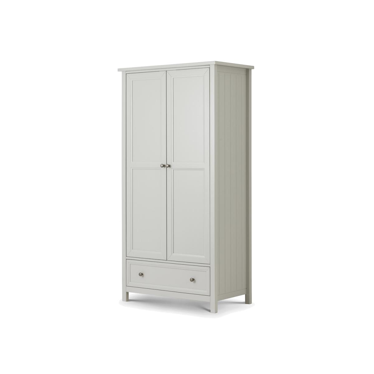 An elegant and simple New England style 2 door wardrobe, which has characteristic panelling beautifully finished in a hardwearing lacquer to create a soothing and refined aesthetic with timeless appeal. Detailed chamfered cabinetry and delicate pewter handles add the perfect finishing touch. With ample hanging space for dresses and suits, the wide storage drawer is perfect for storing knitwear, shoes or bags. Product details • 2 door wardrobe • Single hanging rail • Storage drawer • Shaker style chamfered doors • Round pewter handles • Shiplap style side panels • Square feet • Fully finished back • Assembly required • Fixings supplied • 12 month manufacturers warranty. Product Composition - 95% Wood, 5% Metal. Product Dimensions - 55 cm x97 cm x190 cm , Weight - 58 KGParcel 1 Packaged Dimensions - 100 cm x 68 cm x 11 cm, Weight 23.3 kg Parcel 2 Packaged Dimensions - 192 cm x 65.5 cm x 14.8 cm, Weight 42.6 kg. Please note: this product cannot be be delivered to all Offshore Islands Northern Ireland or Republic of Ireland. This product will be dispatched by one of our trusted suppliers. You’ll be contacted by their selected courier about your delivery.