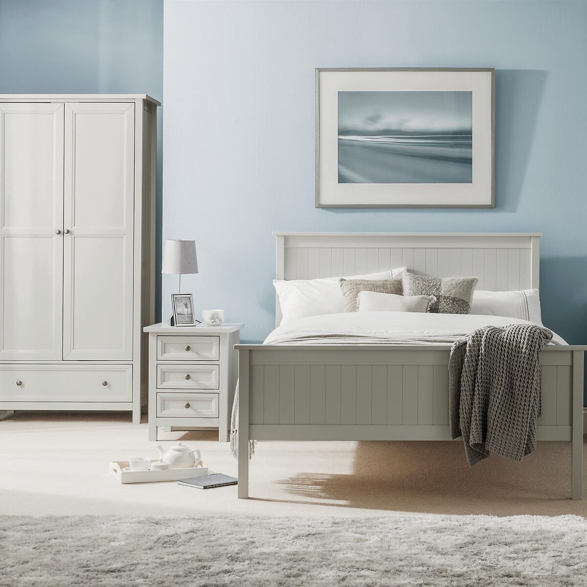 An elegant and simple New England style bed has characteristic panelling beautifully finished in a hardwearing lacquer to create a soothing and refined aesthetic with timeless appeal. A solid slatted base ensures supreme comfort and prolonged mattress life. Product details •Shaker style panelled headboard and footboard • Solid pine slatted base • Assembly required (recommended 2 person) • Fixings supplied • 12 month manufacturers warranty • Mattress not included • Compatible with UK standard size single mattresses (190 cm x 90 cm), UK standard size double mattresses (190 cm x 135 cm), and UK standard size king mattresses (200 cm x 150 cm)Product Composition - 95% Wood, 5% Metal. Product Dimensions Double 200 cm x 148.5 cm x 109.5 cm , Weight - 47.5 KGKing 208 cm x 163.5 cm x 109.5 cm , Weight - 50.5 KGPackaged Dimensions. Double: Parcel 1 Packaged Dimensions - 153 cm x 113 cm x 13 cm, Weight 23 kg Parcel 2 Packaged Dimensions - 193 cm x 16 cm x 12.6 cm, Weight 25 kg. King:Parcel 1 Packaged Dimensions - 233 cm x 39 cm x 9.5 cm, Weight 25 kg Parcel 2 Packaged Dimensions - 203 cm x 84 cm x 16 cm, Weight 32 kg. This product will be dispatched by one of our trusted suppliers. You’ll be contacted by their selected courier about your delivery. Please note: this product cannot be delivered to all Offshore Islands, Northern Ireland or Republic of Ireland.