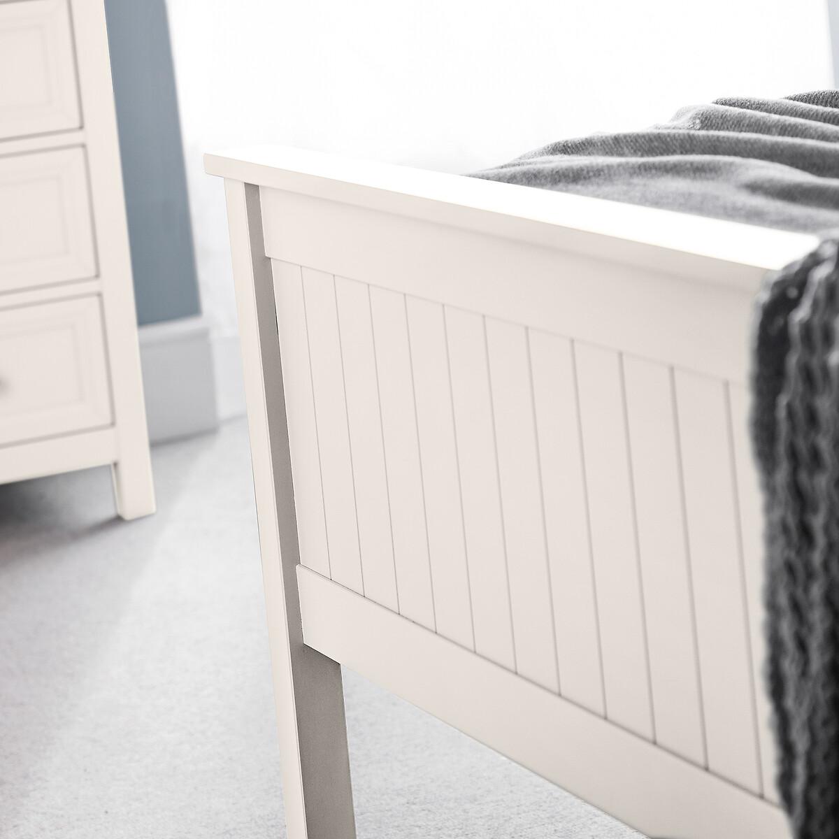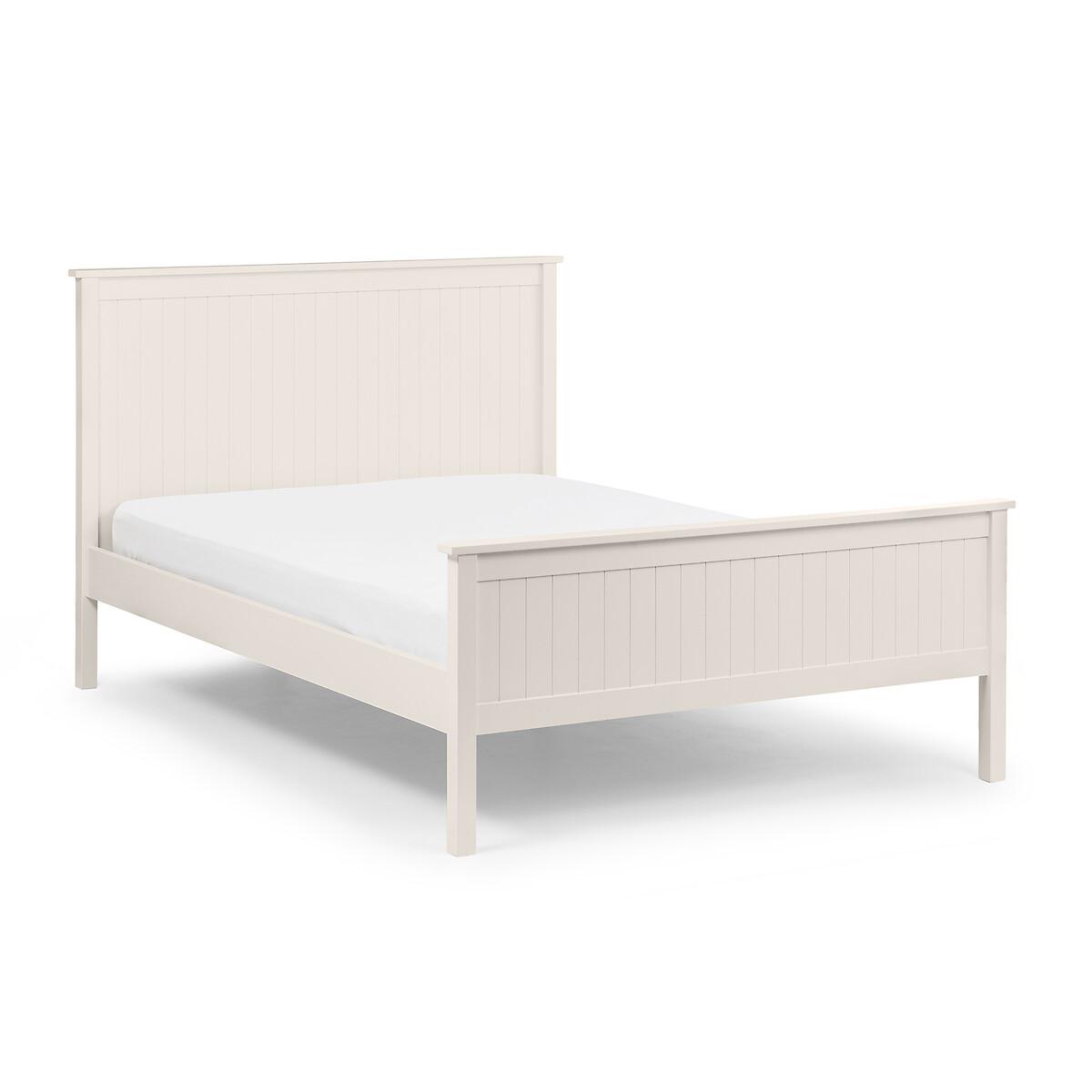 An elegant and simple New England style bed has characteristic panelling beautifully finished in a hardwearing lacquer to create a soothing and refined aesthetic with timeless appeal. A solid slatted base ensures supreme comfort and prolonged mattress life. Product details •Shaker style panelled headboard and footboard • Solid pine slatted base • Assembly required (recommended 2 person) • Fixings supplied • 12 month manufacturers warranty • Mattress not included • Compatible with UK standard size single mattresses (190 cm x 90 cm), UK standard size double mattresses (190 cm x 135 cm), and UK standard size king mattresses (200 cm x 150 cm)Product Composition - 95% Wood, 5% Metal. Product Dimensions Double 200 cm x 148.5 cm x 109.5 cm , Weight - 47.5 KGKing 208 cm x 163.5 cm x 109.5 cm , Weight - 50.5 KGPackaged Dimensions. Double: Parcel 1 Packaged Dimensions - 153 cm x 113 cm x 13 cm, Weight 23 kg Parcel 2 Packaged Dimensions - 193 cm x 16 cm x 12.6 cm, Weight 25 kg. King:Parcel 1 Packaged Dimensions - 233 cm x 39 cm x 9.5 cm, Weight 25 kg Parcel 2 Packaged Dimensions - 203 cm x 84 cm x 16 cm, Weight 32 kg. This product will be dispatched by one of our trusted suppliers. You’ll be contacted by their selected courier about your delivery. Please note: this product cannot be delivered to all Offshore Islands, Northern Ireland or Republic of Ireland.