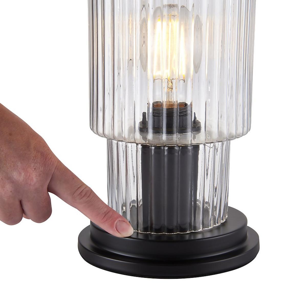 Designed with a fluted glass shade and matt black finish, the Portland table light is the perfect modern addition to any room. The touch on/off function makes it perfect for bedside lighting.
