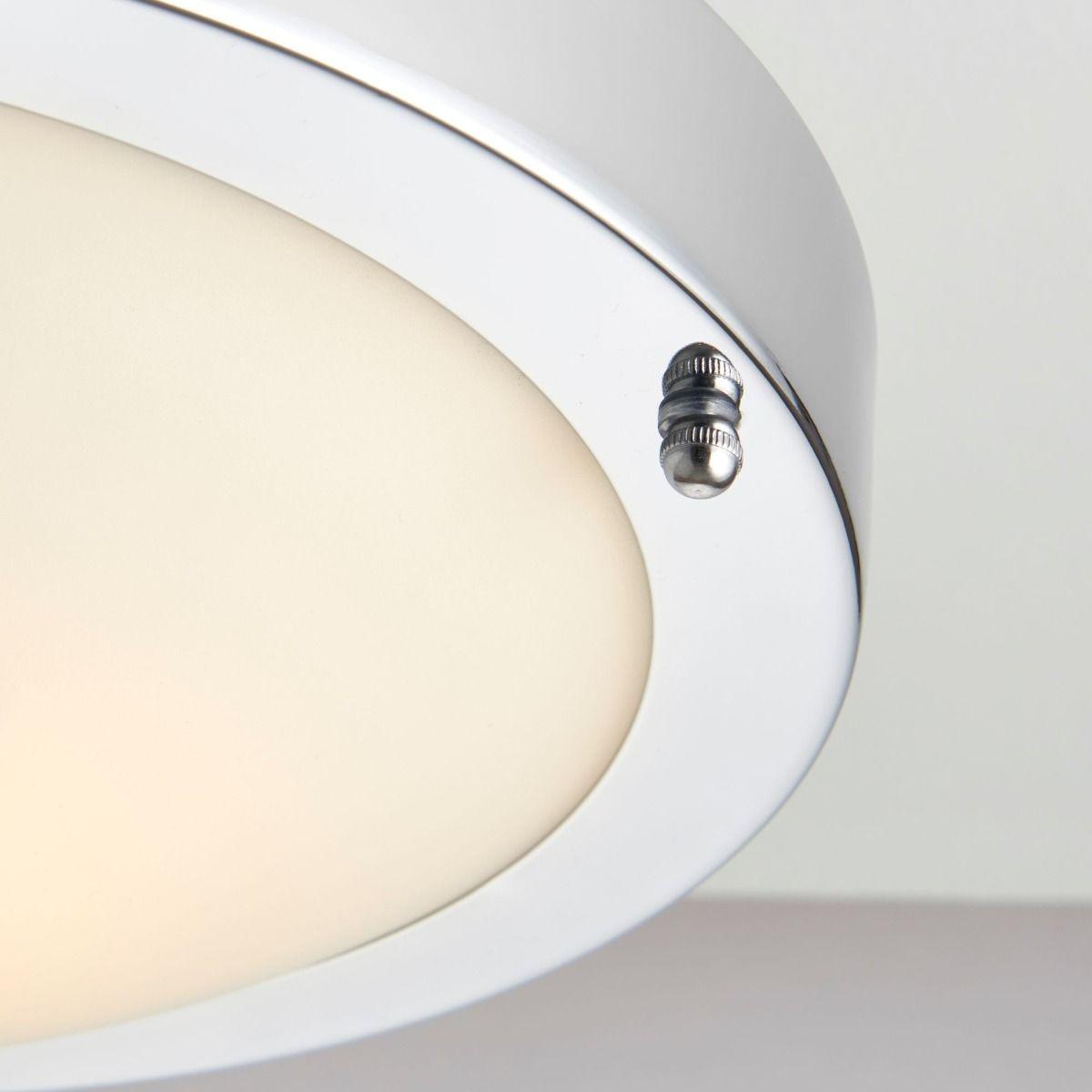 Simplistic IP44 rated bathroom light. Simple and sleek in design, the Portloe flush ceiling pendant is ideal for any bathroom. Boasting polished chrome and frosted glass diffuser, this fitting will suit both contemporary and traditional interiors.
