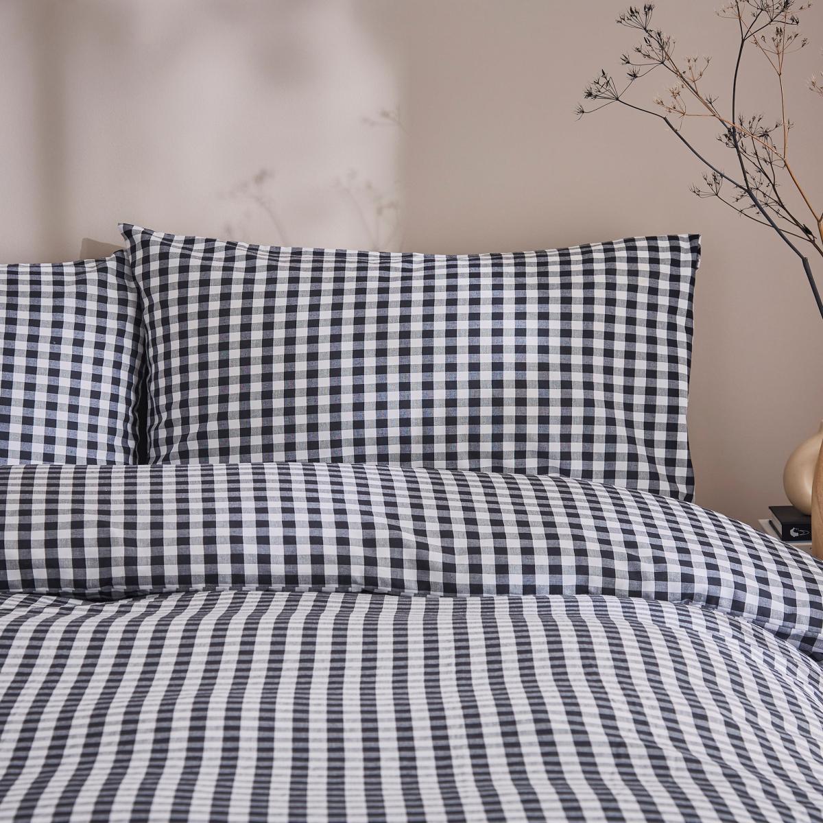 Made from 100% Washed Cotton Gingham woven design Reversible design Button closure made from recycled plastic Available in other colourways Our beautiful Portloe Woven Gingham Duvet Cover Set is made from 100% washed cotton. It is pre-washed to give extra softness and a natural soft laundered finish. A sumptuously soft fabric with a linen-look aesthetic, this set combines luxurious comfort with a nostalgic, yet chic style. Each set comes complete with matching pillowcase(s), ensuring a cohesive look for your sleep space. The secure button closure adds a practical touch to this elegant ensemble, keeping your duvet securely in place. This bedding is naturally soft, breathable and comfortably smooth. Perfect for all year-round summer and winter use, so exactly what's needed for a restful night's sleep. This product is OEKO-TEX MADE IN GREEN certified, meaning it was produced in OEKO-TEX S Te P certified factories - verifying environmental, social, and chemical standards in the facility. It has also been certified to OEKO-TEX STANDARD 100, the original safety standard for everyday confidence. To offer full visibility, the production stages throughout the supply chain can be traced.