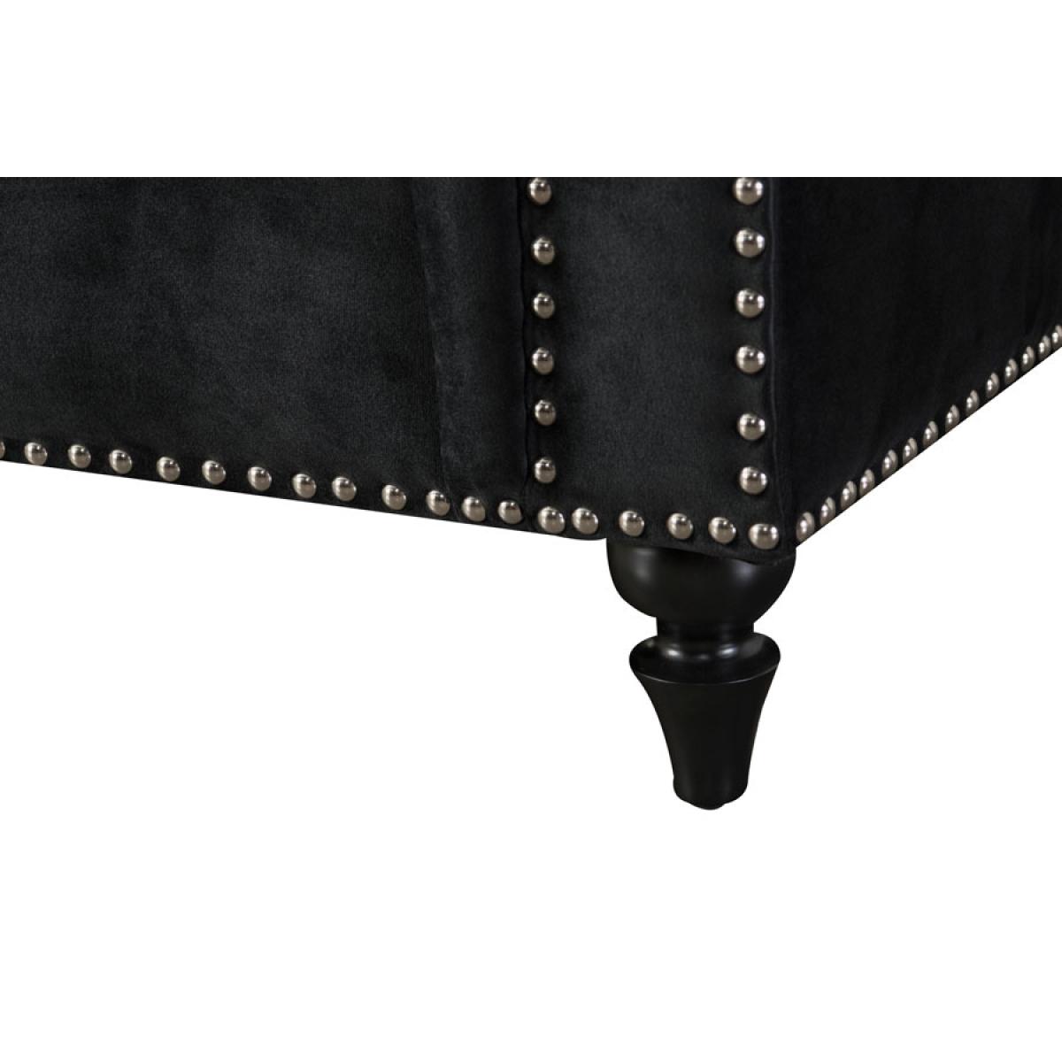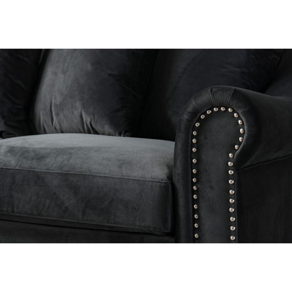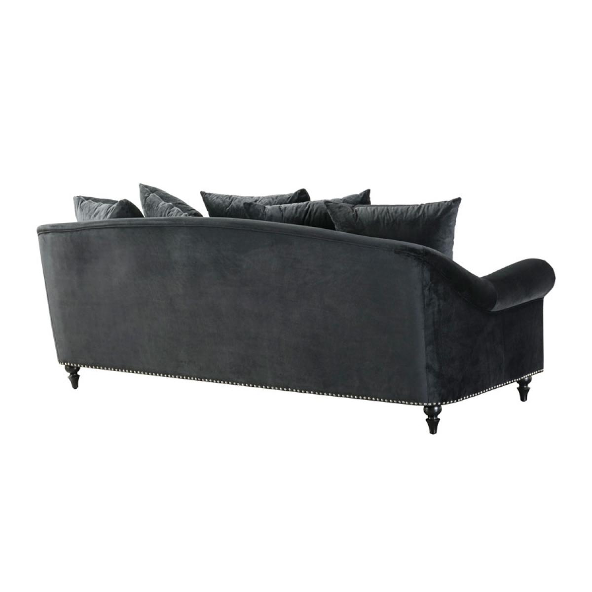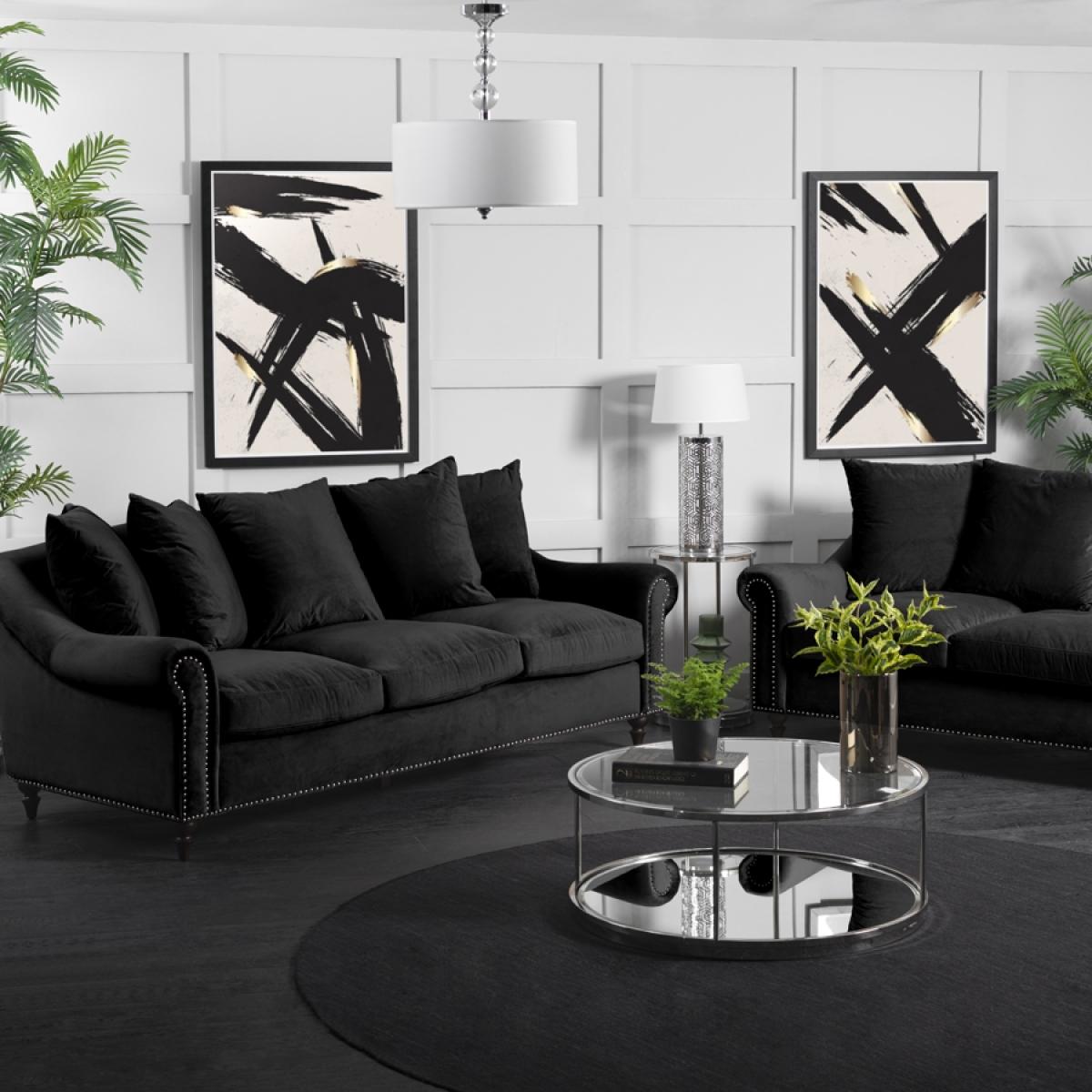 Classic, elegant sofa, designed for maximum comfort. Generous deep seat cushions filled with a combination of feather, foam and fibre. Five feather and foam filled scatter cushions included. Sprung seat and backrest. Solid ash legs with black stain. Chrome upholstery nails. Velvet upholstery fabric. In the unlikely event that you are dissatisfied with your sofa let us know (within 7 days) and we will happily collect it and fully refund you , including the return shipping cost.