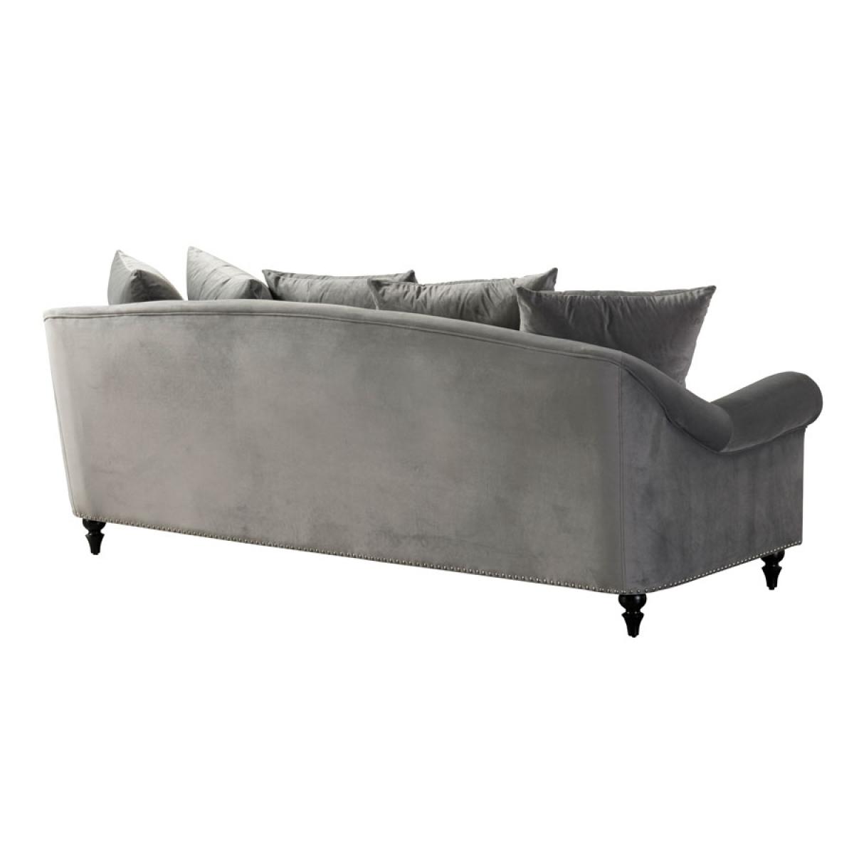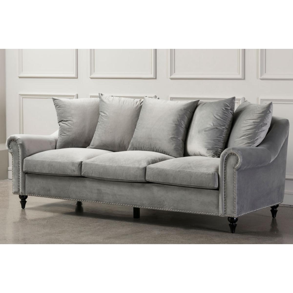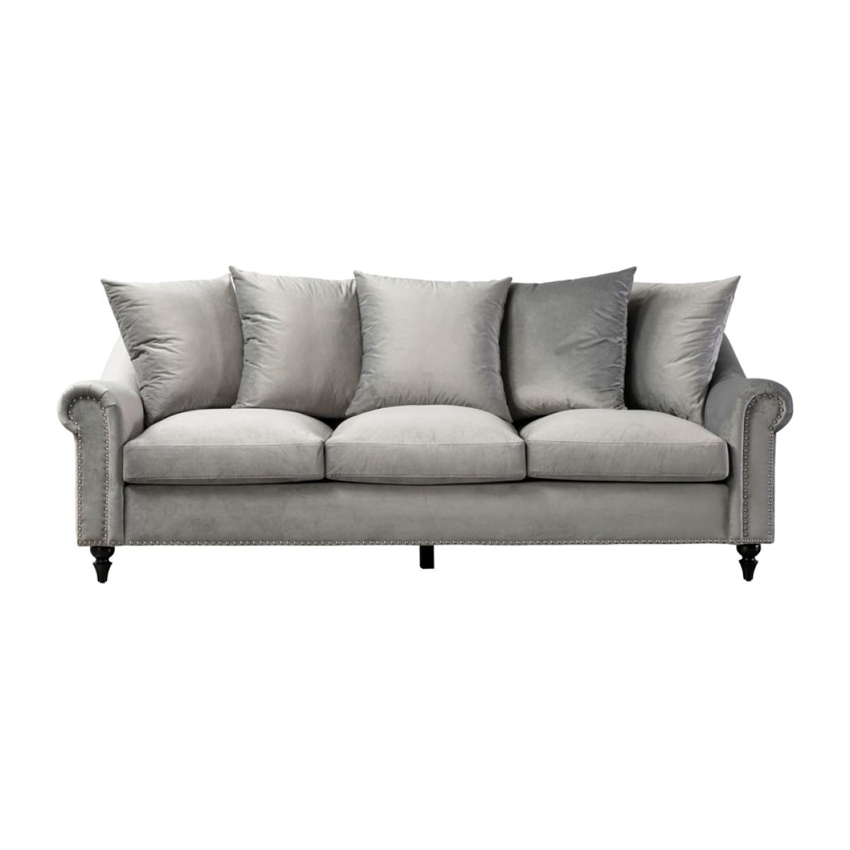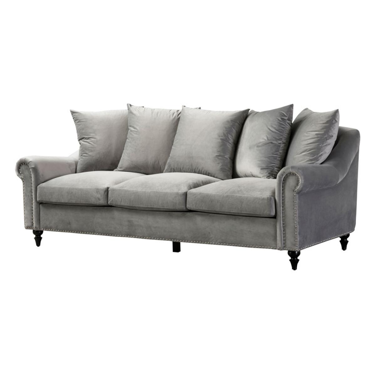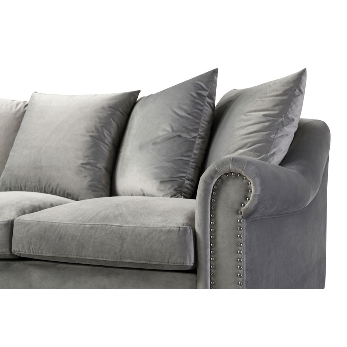 Classic, elegant sofa, designed for maximum comfort. Generous deep seat cushions filled with a combination of feather, foam and fibre. Five feather and foam-filled scatter cushions included. Sprung seat and backrest. Solid ash legs with black stain. Chrome upholstery nails. Velvet upholstery fabric. S on sofas if you change your mind within 7 days. Simply notify us, put the sofa back in the box, and we will collect it and send you a full refund. (This offer excludes Scottish highlands and islands & any Ireland addresses).