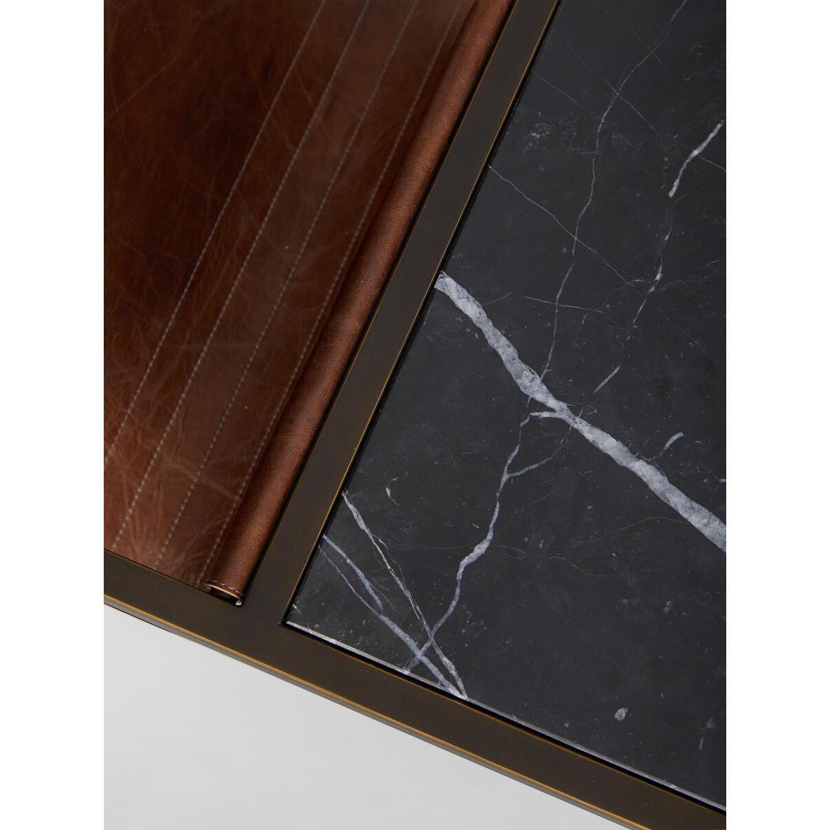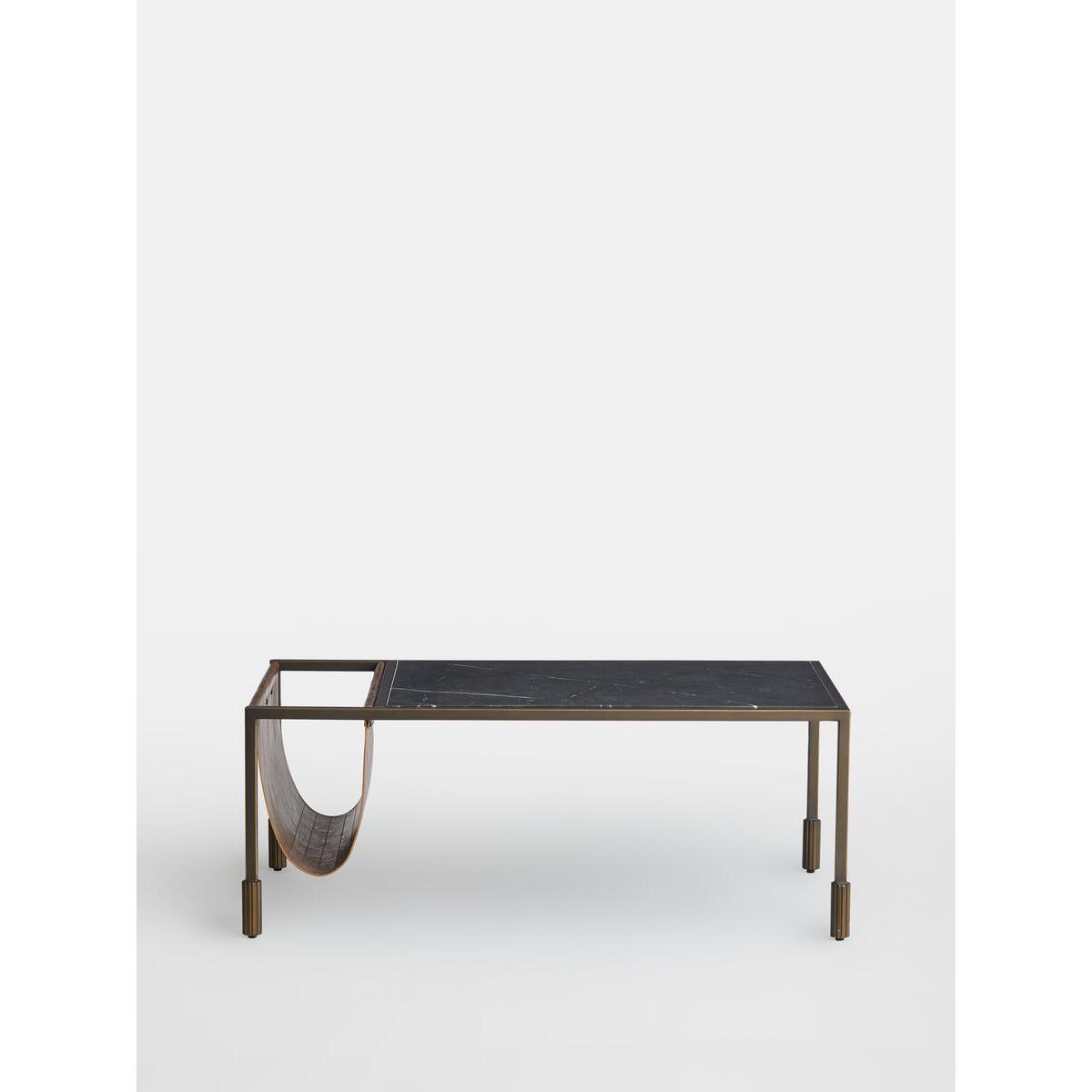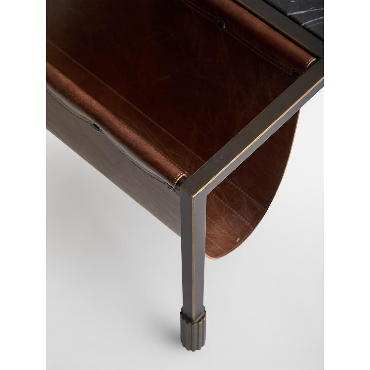 Drawing inspiration from the furniture in Soho House Tel Aviv,our Portnall coffee table is built on a blackened-brass frame, withblack honed-marble top and distressed-leather sling adding anunexpected twist. Blackened-brass frame. Black honed-marble top. Distressed-leather sling. Variations in the marble make each piece unique. Inspired by Soho House Tel Aviv.