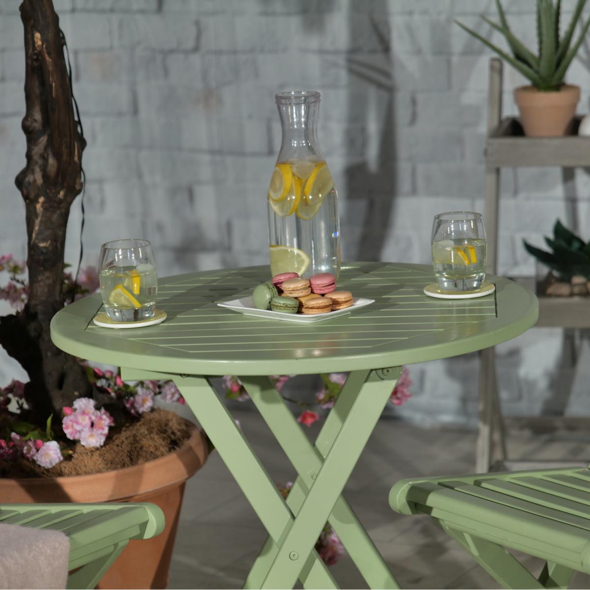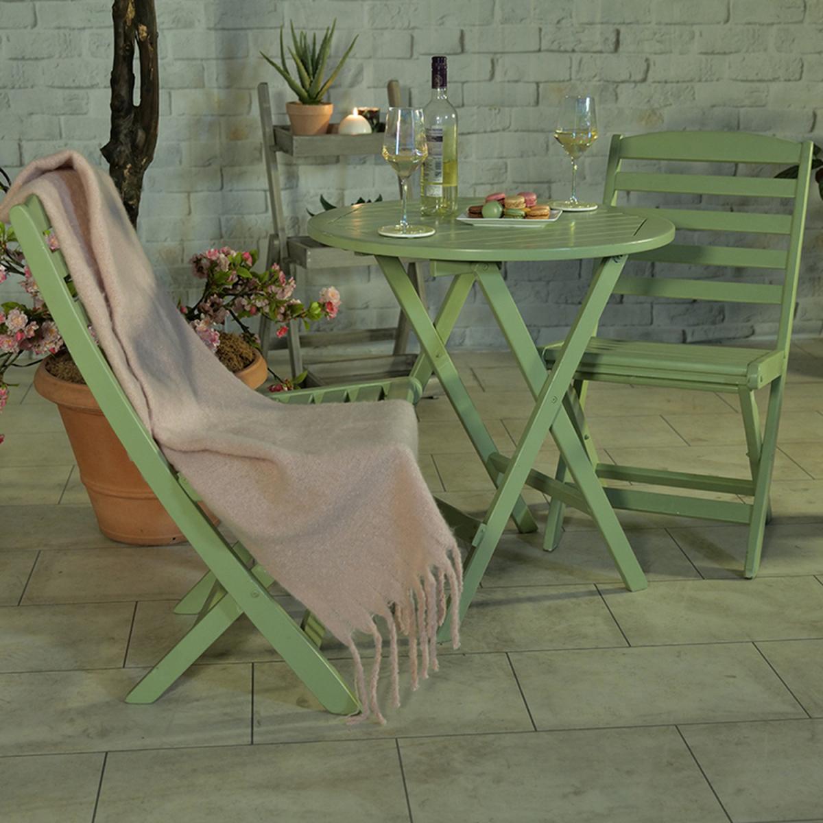 Demand for colour in the garden has resulted in the introduction of the Porto, our new wood range. This two seater bistro set, which has been crafted with Acacia hardwood and painted in green polyurethane coating, is perfect for creating high quality furniture due to its warm tones and natural beauty. The acacia tree grows very slowly which makes the wood incredibly hard and durable allowing the furniture to be used for many years. This comfortable and chic bistro set will be the perfect setting for any meal or drinks in the sunshine, in any outdoor space.