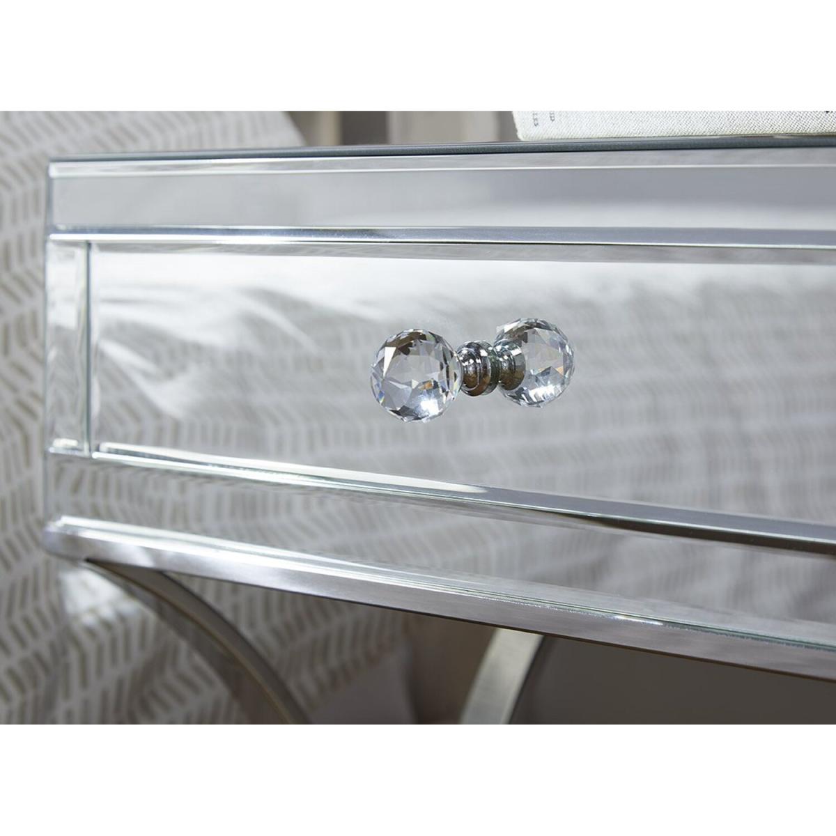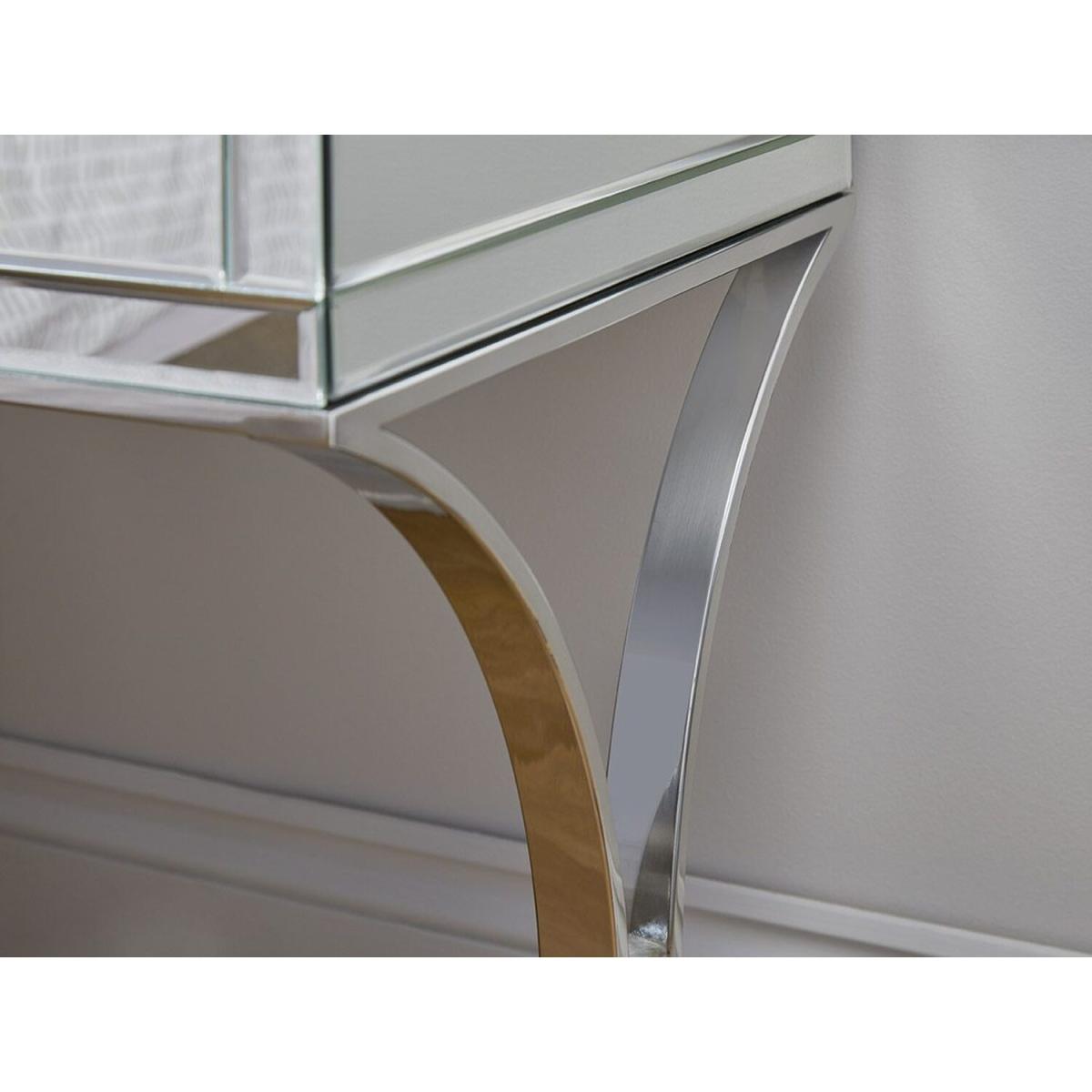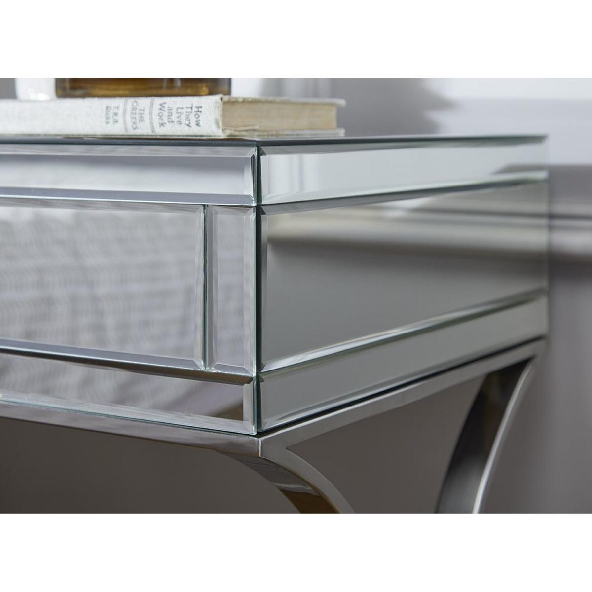 Providing valuable storage and classic elegance, the Porto Mirrored Bedside Tables are the perfect partner for any bedroom space. With stunning curved chrome legs and a single drawer per unit, these sophisticated pieces are the perfect match for any stylish bedroom looking for a timeless classic.