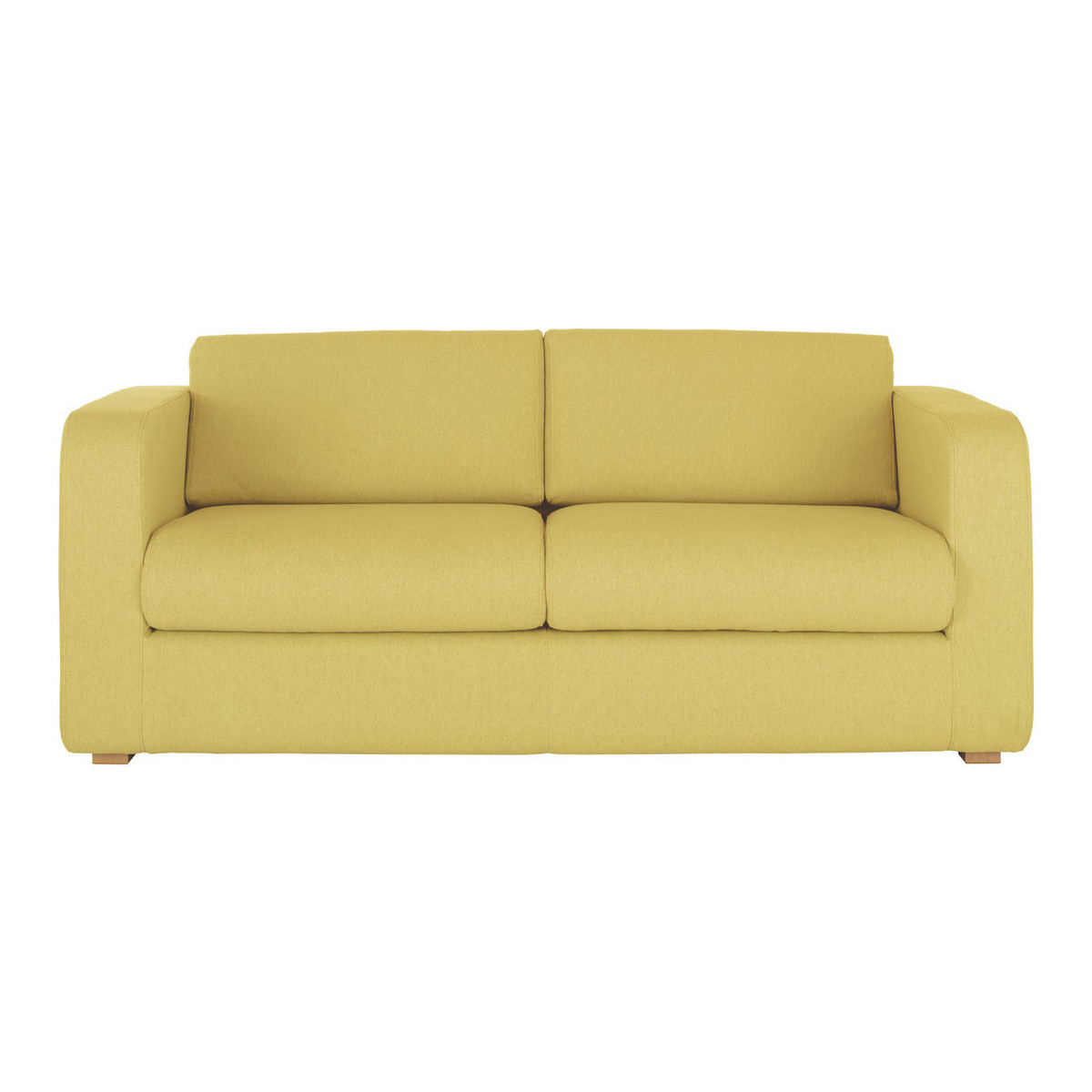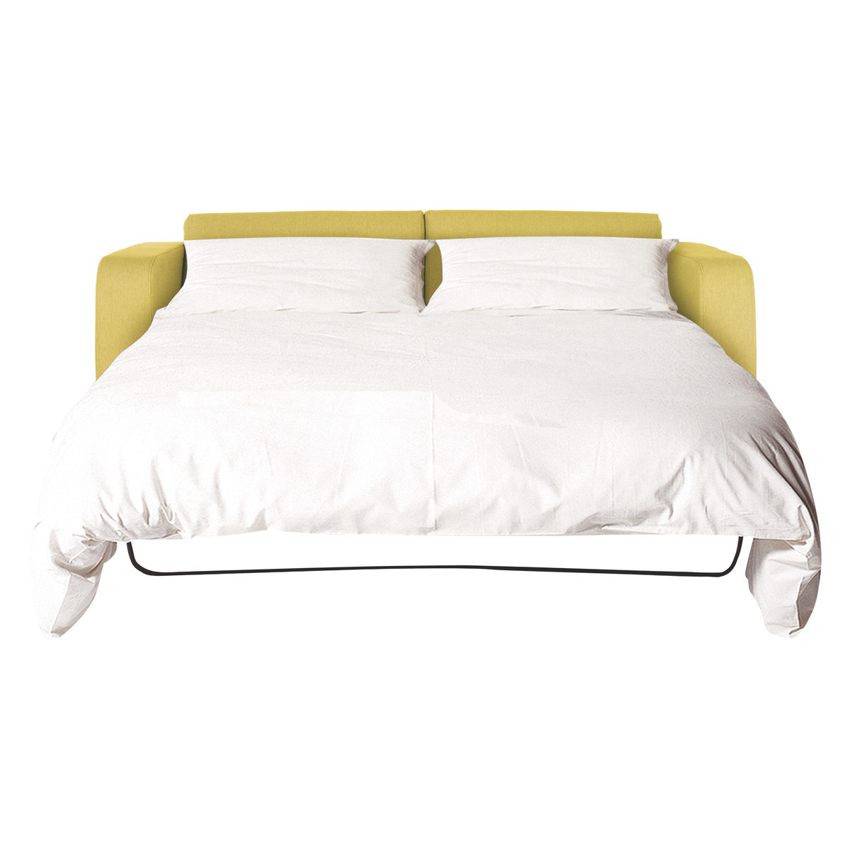 Classic meets contemporary in this clean-lined Porto yellow fabric 3 seater sofa bed to showcase simplicity at its finest. With generous seating space, a durable solid wood frame and foam-filled padding, it’s the perfect balance between style, quality and comfort. Effortlessly transform Porto’s compact design into a sofa bed that comfortably sleeps 2 people, with a 5cm foam mattress for added comfort;it’s a great investment piece if you’re short on space. Getting a sofa into your home can sometimes be a squeeze, so be sure to read our Sofa Measuring Guide to ensure the sofa of your dreams is compatible with your space. Part of the Porto sofa range, available in leather and fabric options, in various colours and sizes.