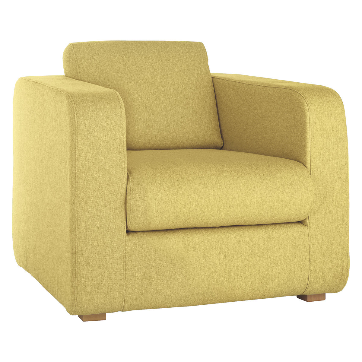 Porto Yellow FaBric Armchair, Wooden Feet, Saffron Yellow