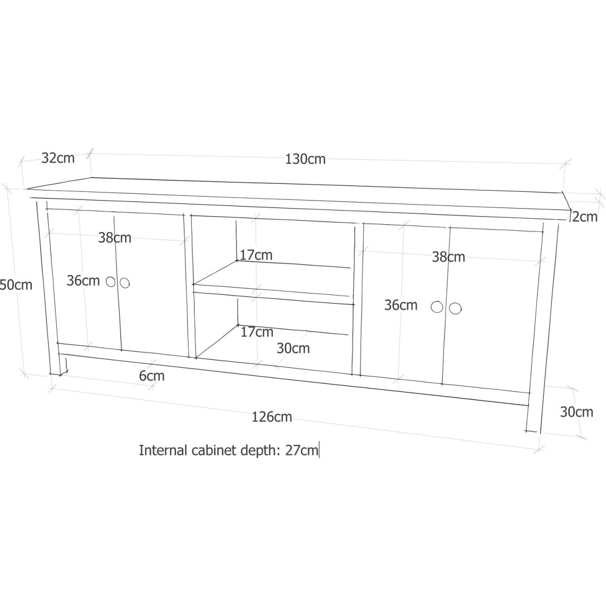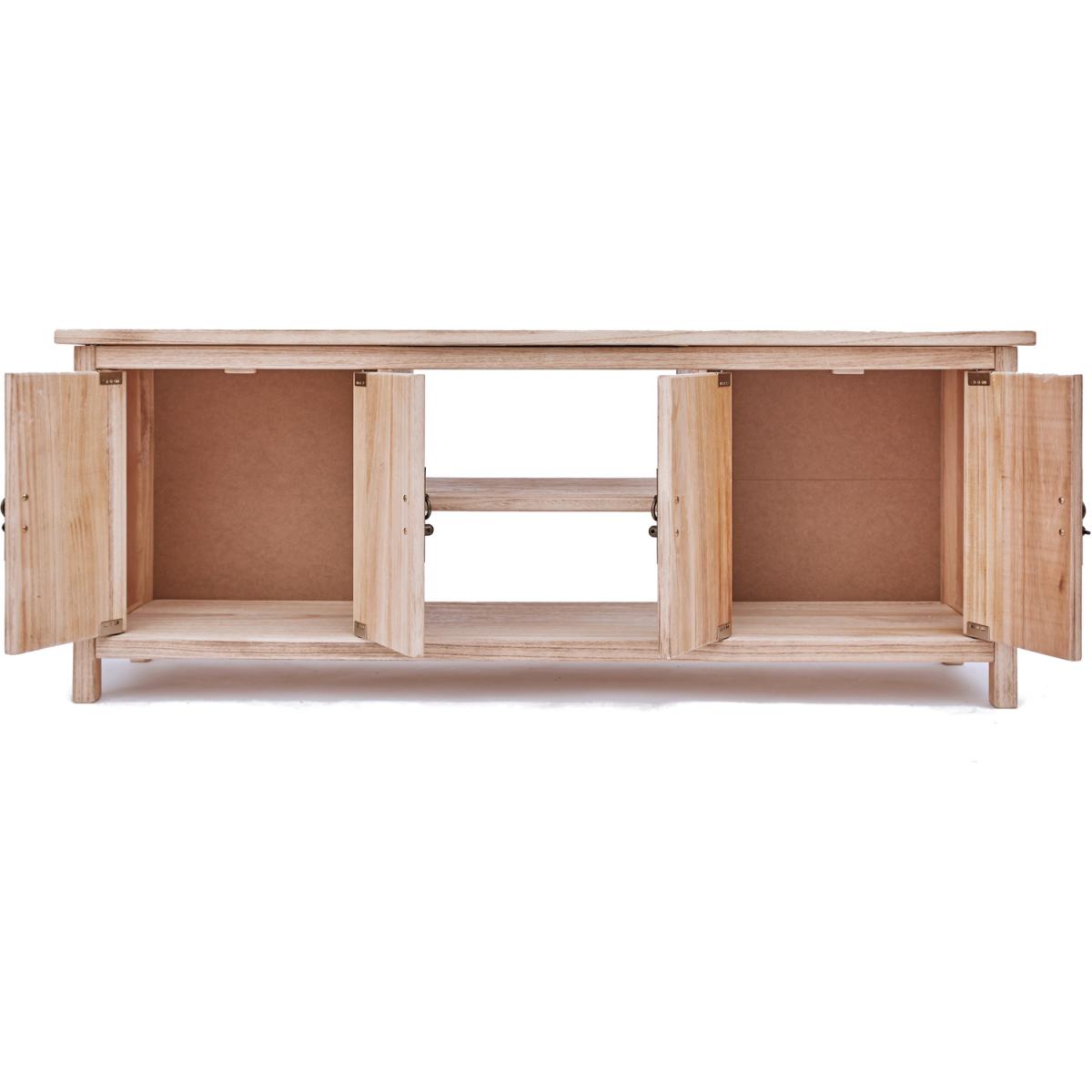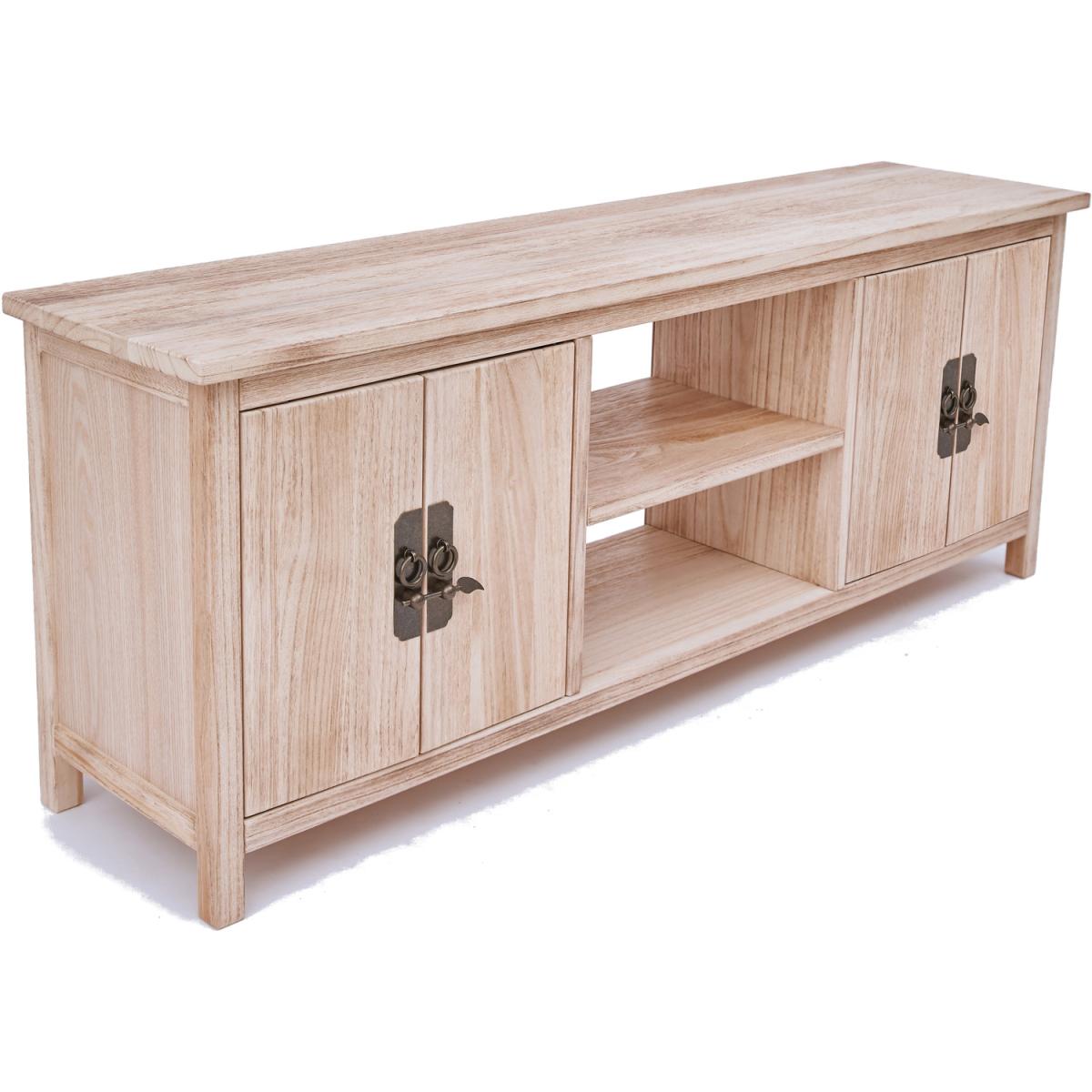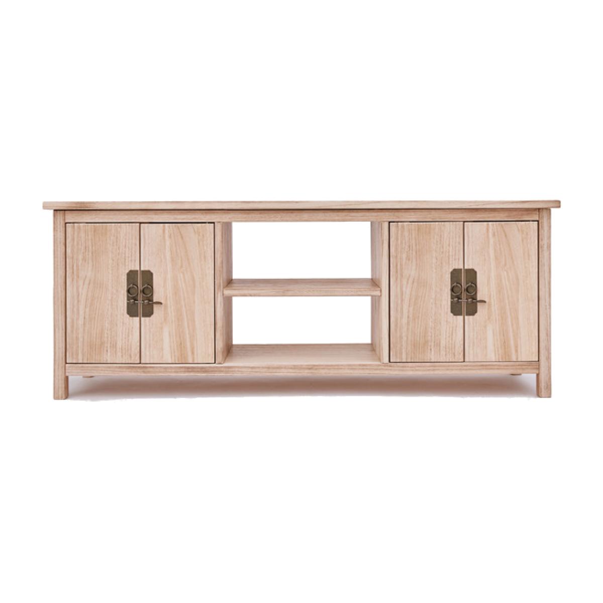 Our Portofino collection has a simple but pleasing design inspired by traditional Chinese cabinets and is produced by our skilled craftsmen to the highest standards using responsibly sourced wood and veneers. All cabinets are made using a combination of solid Paulownia wood and ash veneer. The solid wood parts are brushed and finished on a clear lacquer to give them an aged look that will look great in any room setting. This large TV unit has a mixture of storage and open space to house all your TV-related items together. There is plenty of space on top for your TV, in the centre below is an open space divided by a shelf creating two storage areas, and easy access for wiring is available through the open back of the unit. At either end are cupboards to hide away your games consoles or remotes, or even your snack for halftime! These attributes combined with a simple construction for easy assembly make it a great value product to be taken home today.