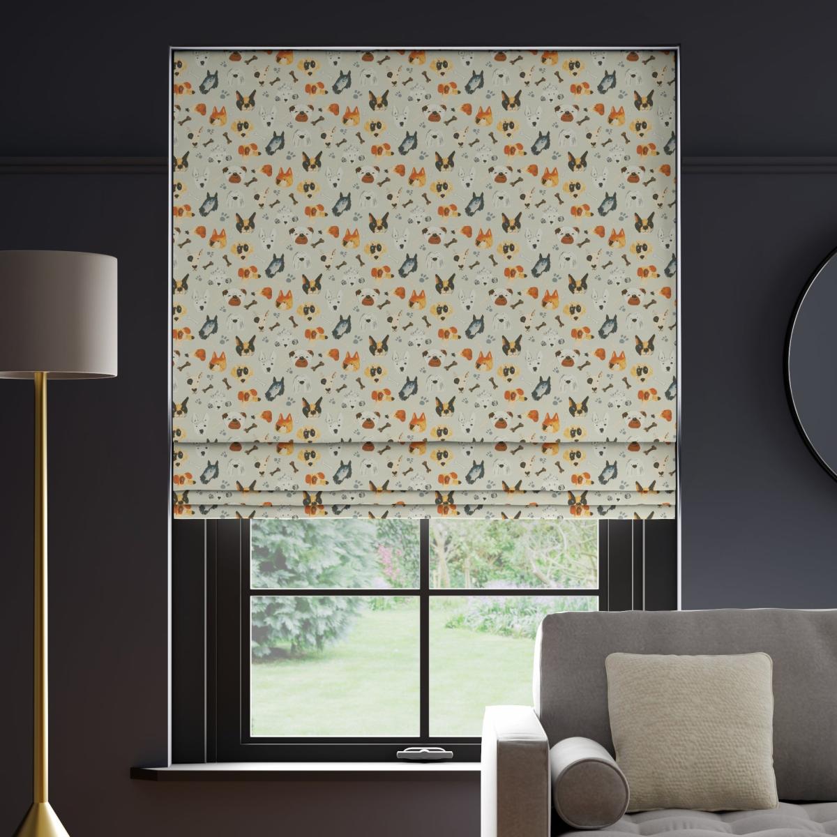 The Portrait Pups Roman Blinds features a quirky, animated dog design on 100% cotton. A web exclusive design, you won't find this in stores! Choosing your lining: Choosing your fitting type:; Choosing which side you’d like the operating chain: Need help deciding or measuring? Book a free appointment with one of our consultants! Child Safety: We add clips to the back of our roman blinds to attach the cords to the fabric. They also double up as a child safety feature. If pressure is exerted the clips will detach to prevent the risk of strangulation. Please read our Blinds Safety Guide for more information. If the clips detach accidentally during normal use, they can be easily re-clipped back into place. Online Only: This product is only available to order online. Our expert virtual consultants can provide advice on measuring/fitting and style tips and our free samples can be ordered online to be delivered straight to your home to help you choose a fabric that's right for you. Once you're happy, simply place your order online and we'll do the rest.