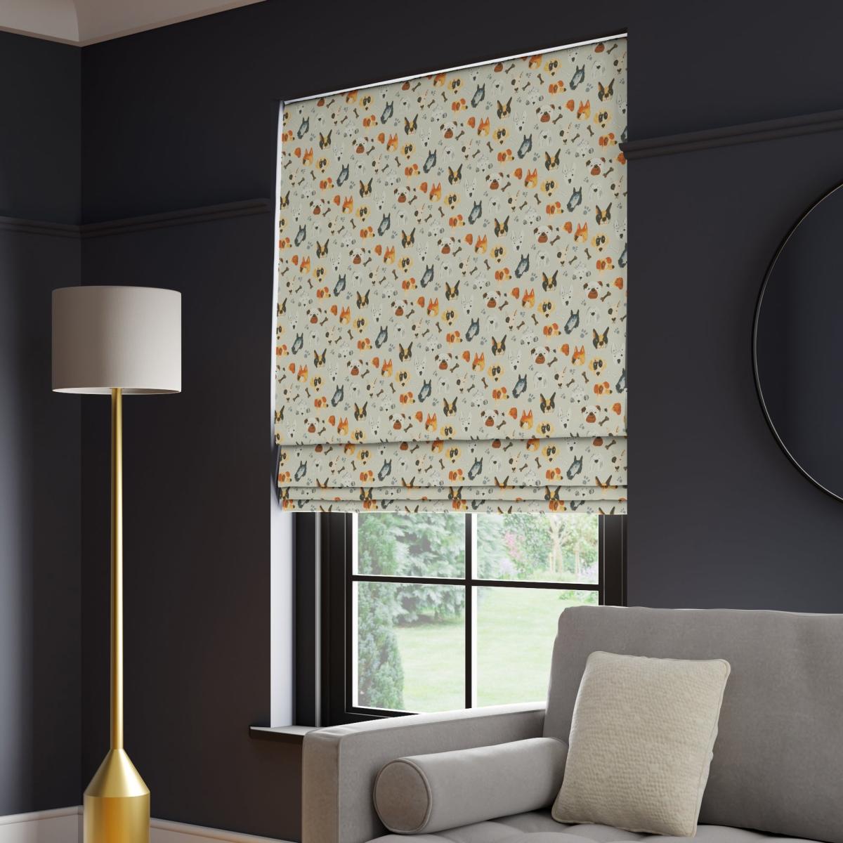 The Portrait Pups Roman Blinds features a quirky, animated dog design on 100% cotton. A web exclusive design, you won't find this in stores! Choosing your lining: Choosing your fitting type:; Choosing which side you’d like the operating chain: Need help deciding or measuring? Book a free appointment with one of our consultants! Child Safety: We add clips to the back of our roman blinds to attach the cords to the fabric. They also double up as a child safety feature. If pressure is exerted the clips will detach to prevent the risk of strangulation. Please read our Blinds Safety Guide for more information. If the clips detach accidentally during normal use, they can be easily re-clipped back into place. Online Only: This product is only available to order online. Our expert virtual consultants can provide advice on measuring/fitting and style tips and our free samples can be ordered online to be delivered straight to your home to help you choose a fabric that's right for you. Once you're happy, simply place your order online and we'll do the rest.