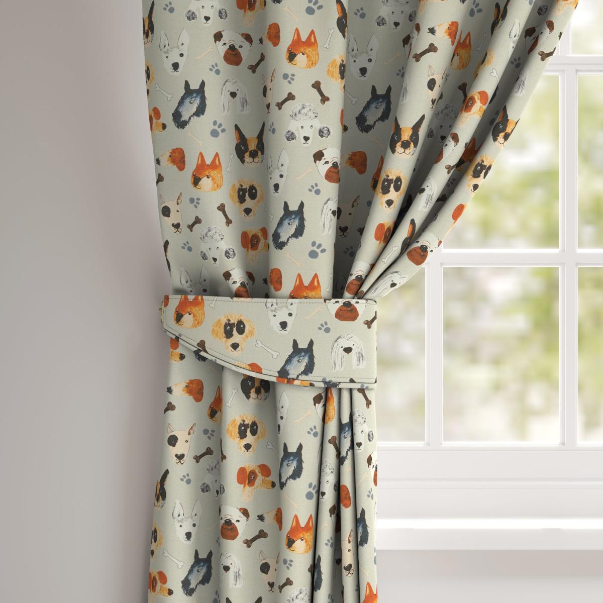 Crafted with a quirky and fun animated dog design, the Portrait Pups Tieback will add a welcoming touch and pop of colour to your home, while neatly tucking away your curtain of choice. Pair this stylish tieback with our matching Made To Measure Curtain to give your home a beautifully co-ordinated finish. Online Only: This product is only available to order online. Our expert virtual consultants can provide advice on measuring/fitting and style tips and our free samples can be ordered online to be delivered straight to your home to help you choose a fabric that's right for you. Once you're happy, simply place your order online and we'll do the rest.