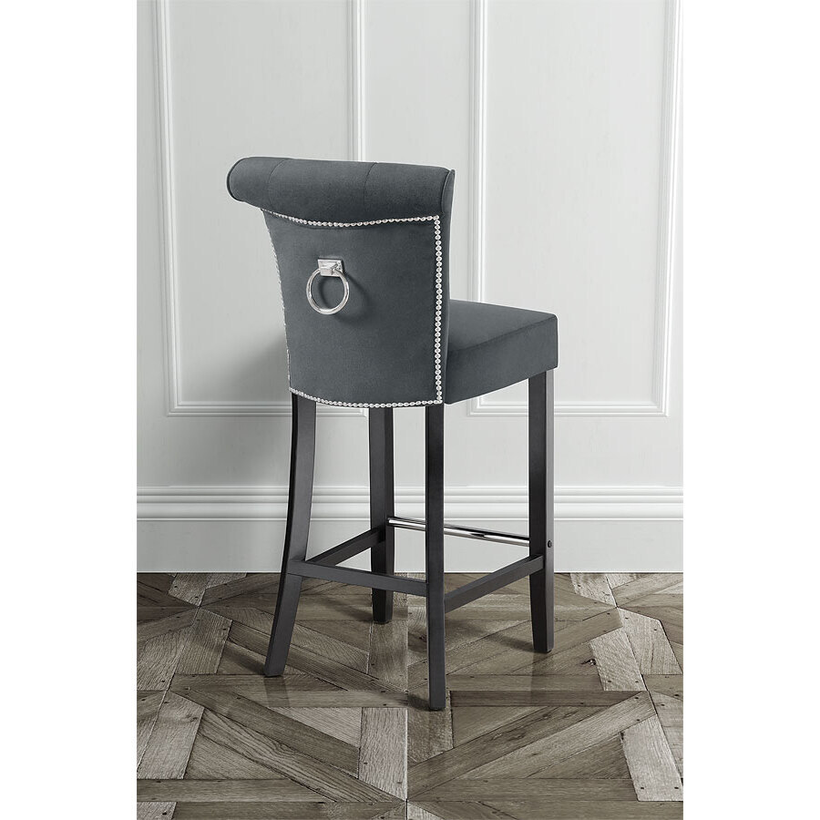 Due to the overwhelming success of our Positano Chair, (and repeated customer requests) our in-house design team have developed the Positano Bar Stool. This is a magnificent, statement stool that will add a sophisticated, elegant touch to your interior. Luxurious smoke velvet fabric. Feature chrome handle. Handsome chrome upholstery tacks. Require Part Assembly
